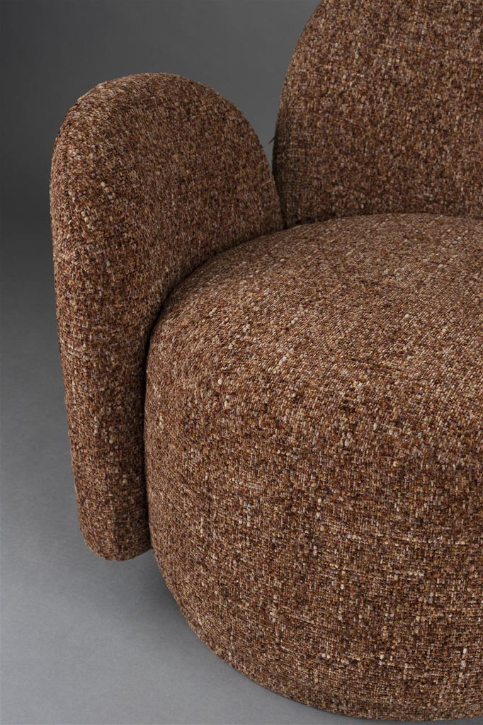 Imagine curling up within a flower, its petals cradling you as you read a good book. The Dutchbone Rose swivel chair stimulates the imagination with its unique design. Fully upholstered in coarse-woven, melange fabric, it offers a playful effect and nods to the vintage interior feel. Combined with its rounded shapes, it creates a delightful appearance that fills the room with a warm ambiance.