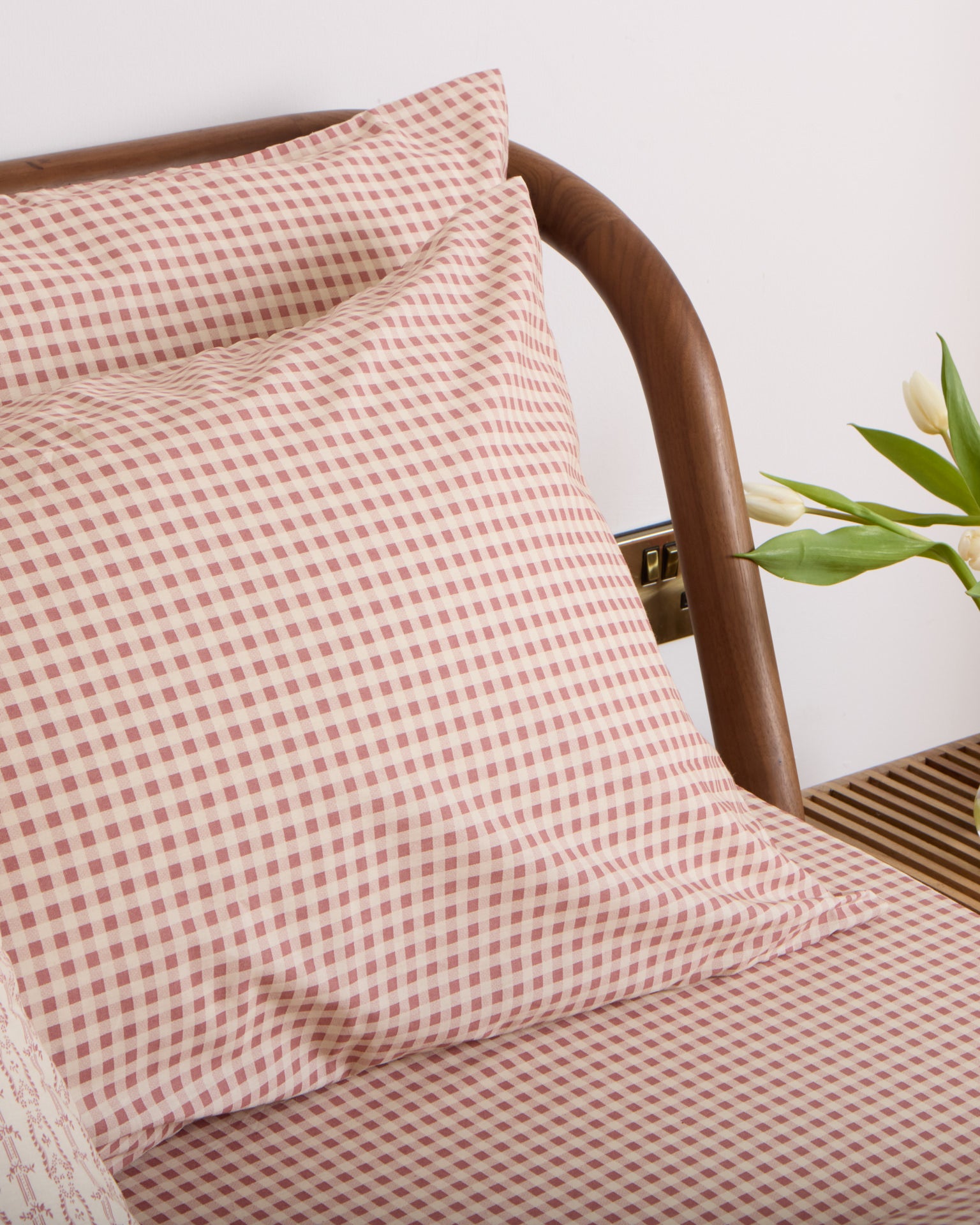 Crafted from soft 180-thread-count cotton, the Poppy Gingham Pillowcases perfectly complement the Poppy Duvet Set. Designed in Ireland and made in Portugal, they feature a red and cream mini gingham pattern. Light, breathable, and smooth to the touch, these pillowcases bring timeless elegance and everyday comfort to your bed.