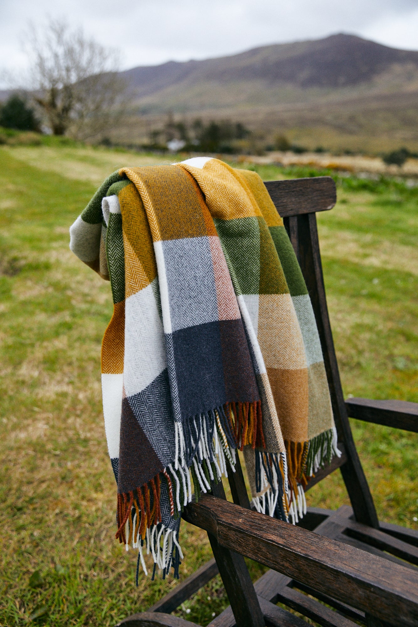 Inspired by the rugged Mayo landscape this luxurious throw combines shades of green, white and mustard in a timeless block check pattern, adding a touch of warmth to any space.