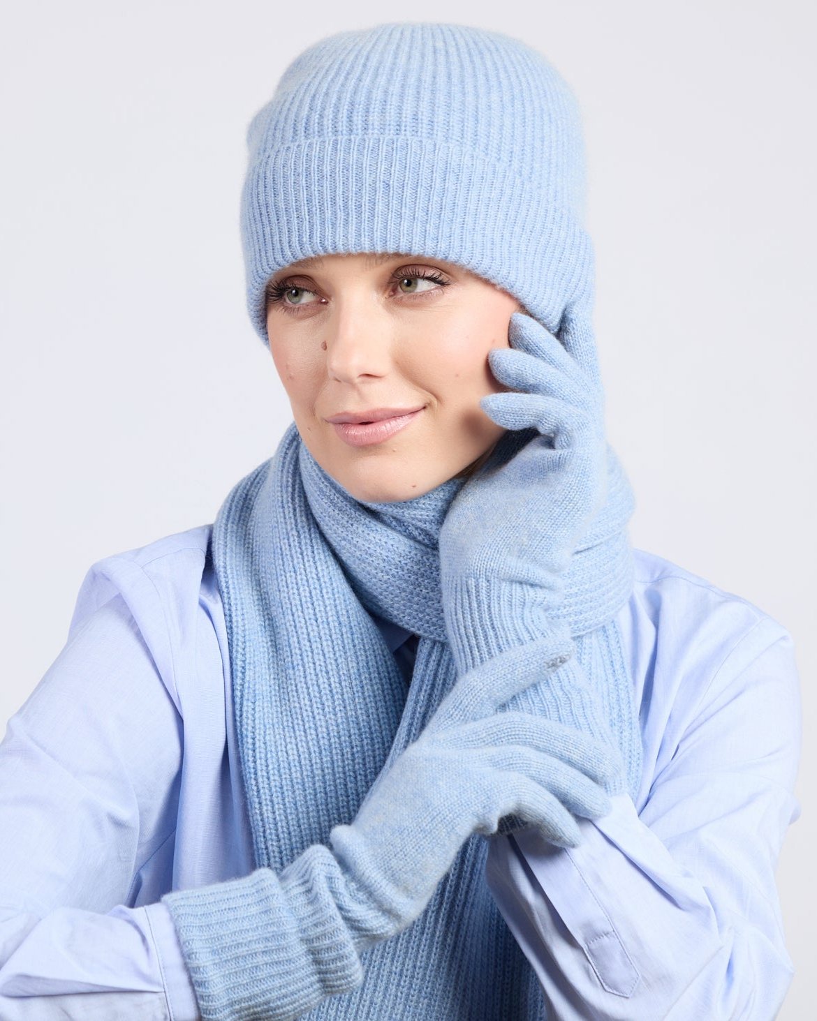 Wrap yourself in luxurious warmth with our Foxford Blue Ribbed Cashmere Beanie. Meticulously crafted from premium cashmere, this beanie's traditional ribbed pattern emanates unparalleled elegance.