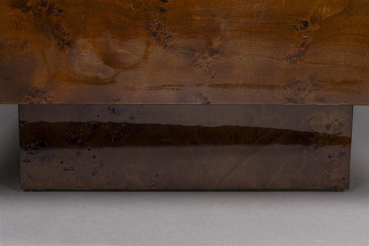 If you want to bring the warm atmosphere of a 1970s interior into your home, the Dutchbone Quinn walnut coffee table is the perfect choice. This striking table instantly transports you back in time, thanks to its distinctive shape and the unique character of its design. The walnut veneer pattern, combined with a high-gloss finish, adds an eccentric touch that completes the retro vibe. The result? Your interior transforms into a cosy space – a place to warm your soul.