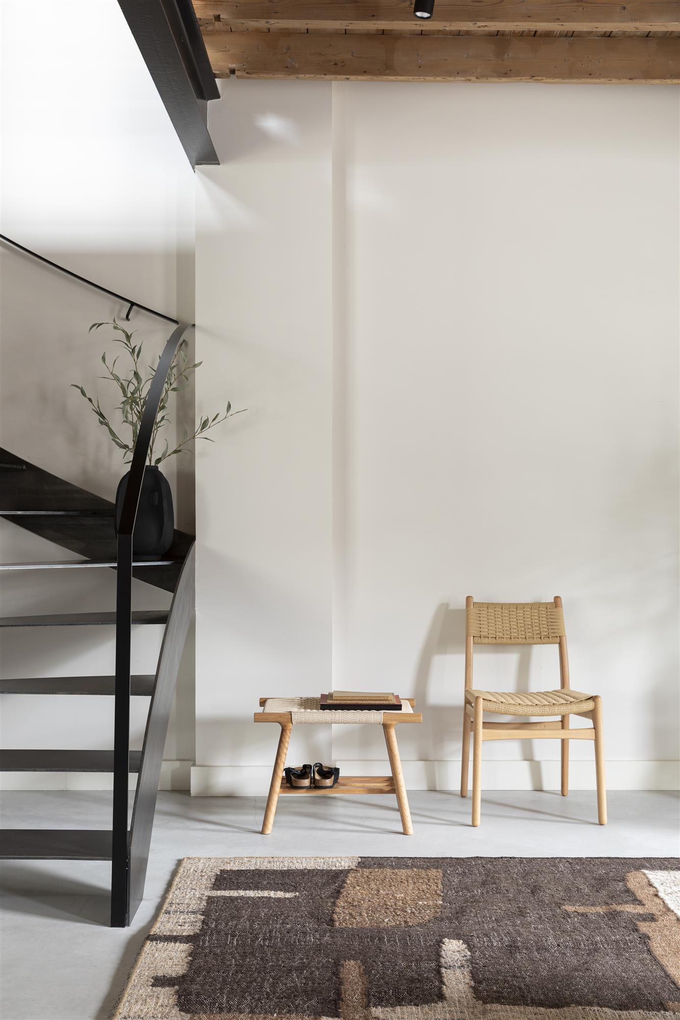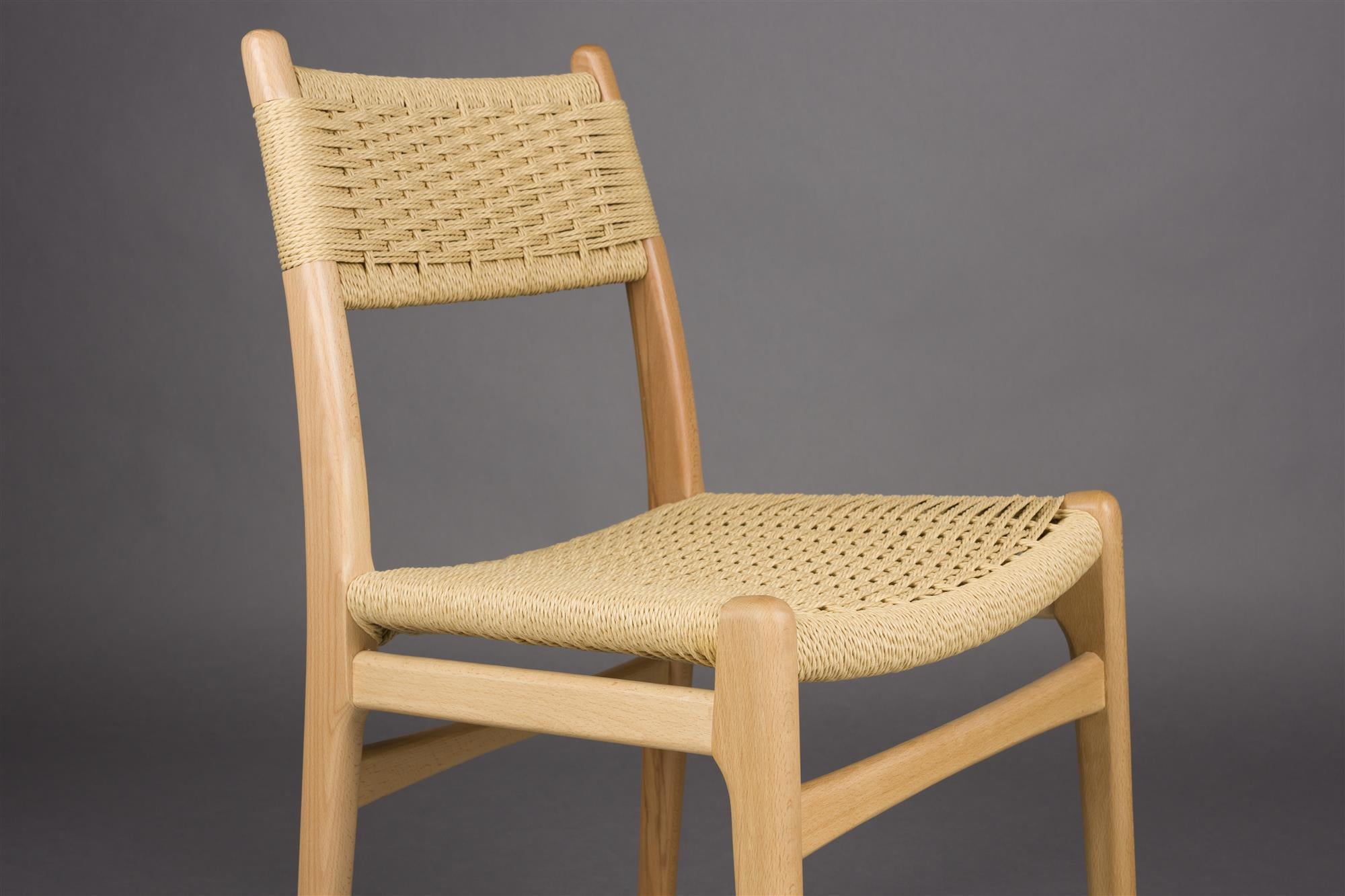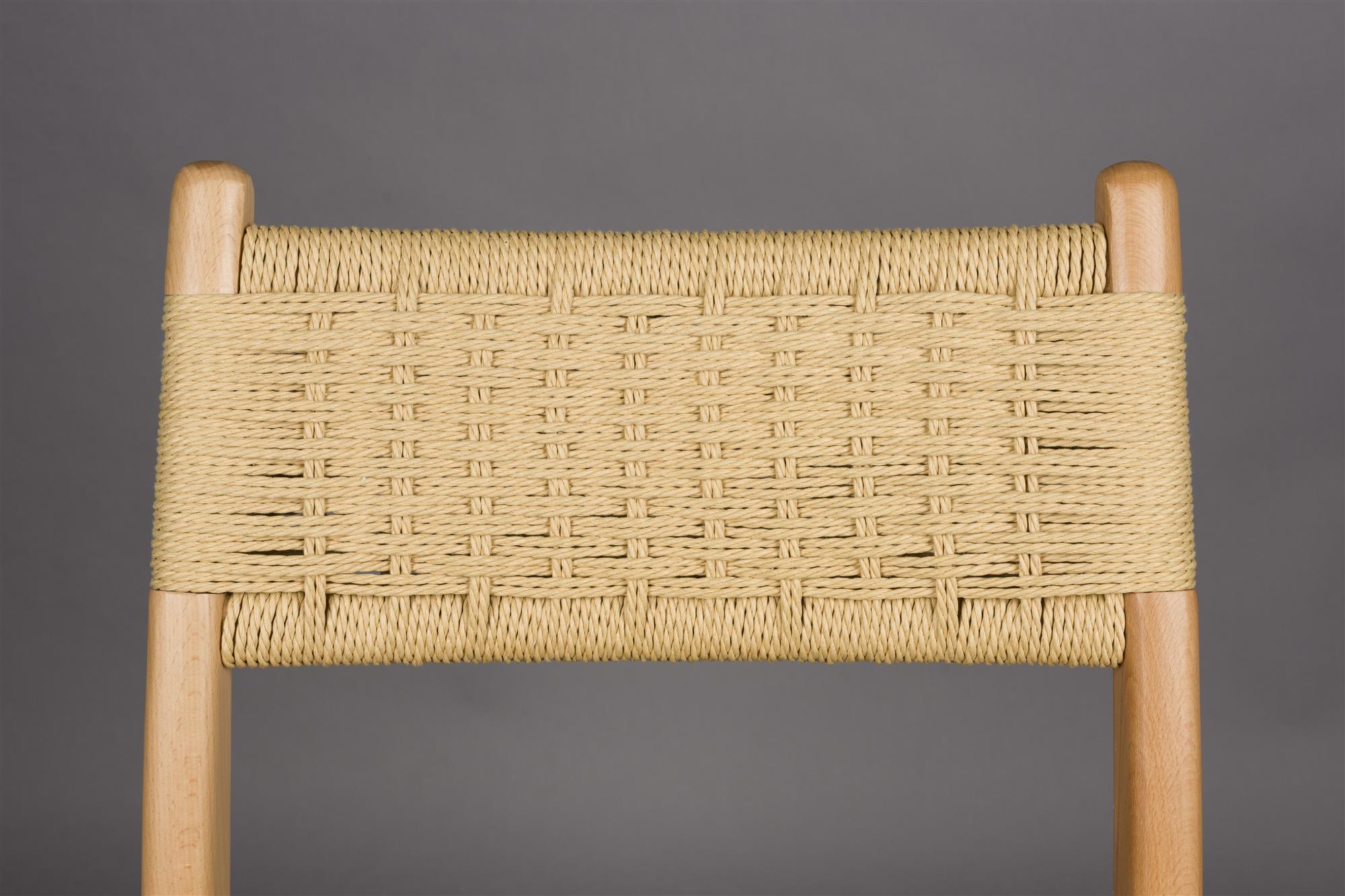 The chair features a beautifully crafted wooden frame in a natural tone, and stands out with its seat and backrest made from woven rope. Inspired by the cosy interiors of the 1950s, 60s, and 70s, Cecile also fits seamlessly into a modern home. An eye-catching seat, natural materials, and a retro twist make this chair a true mood-setter for your dining table.