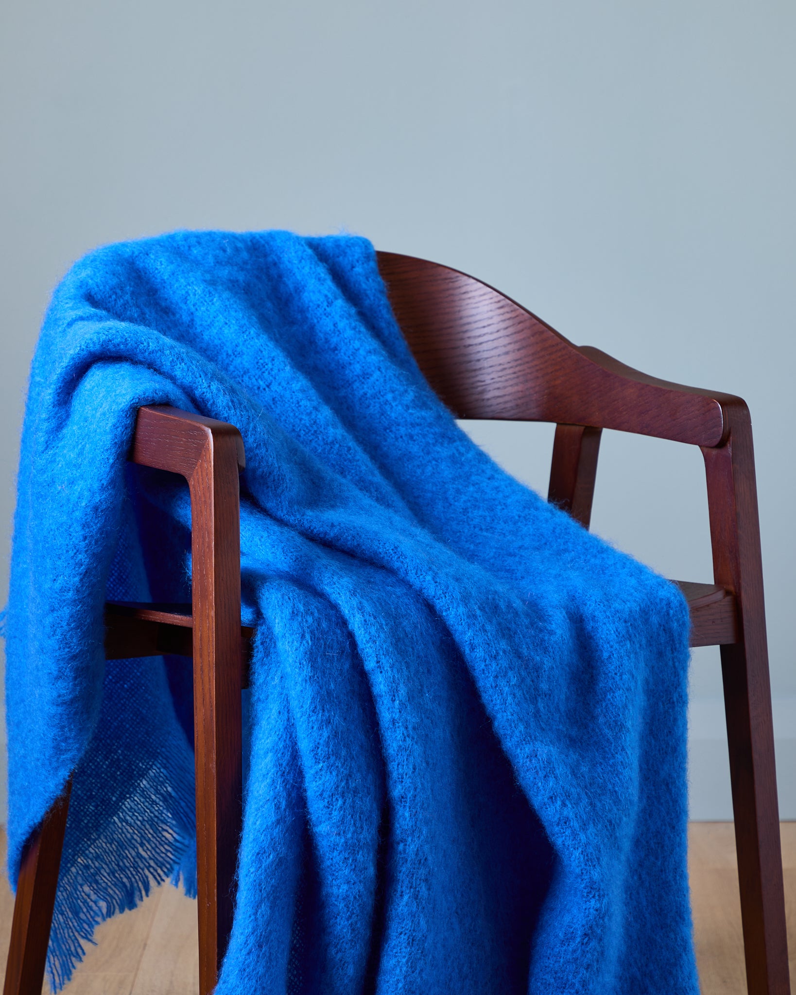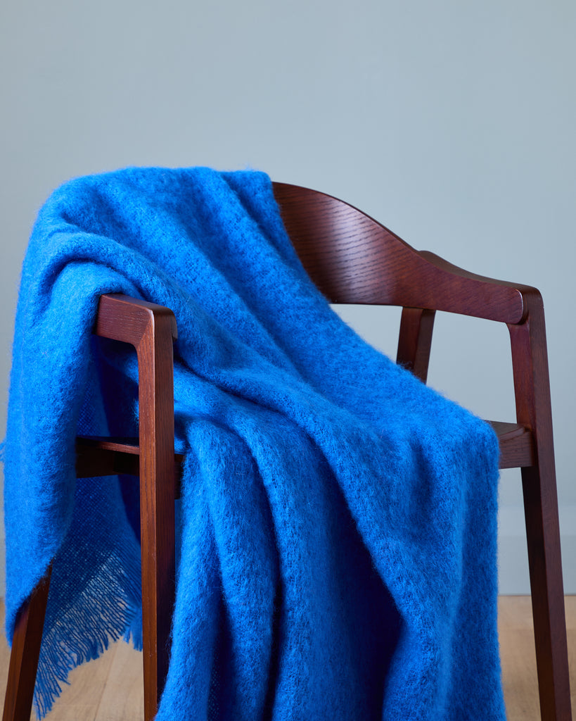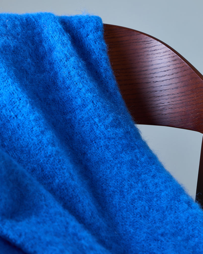 New for 2025 - Wrap yourself in the soft luxury of our new mohair collection inspired by the beauty and movement of Ireland's rivers. The Foxford Liffey Mohair Throw in cobalt blue is woven with a rich blend of mohair and wool fibres, these throws are exceptionally warm, lightweight and irresistibly soft to the touch.