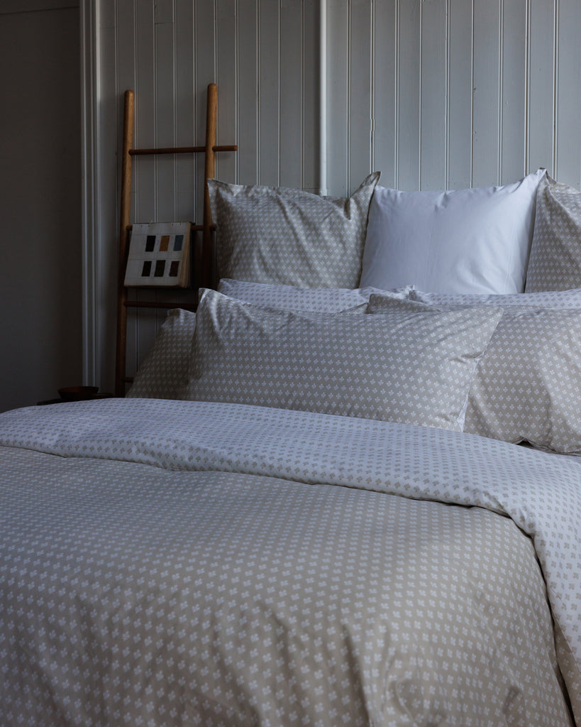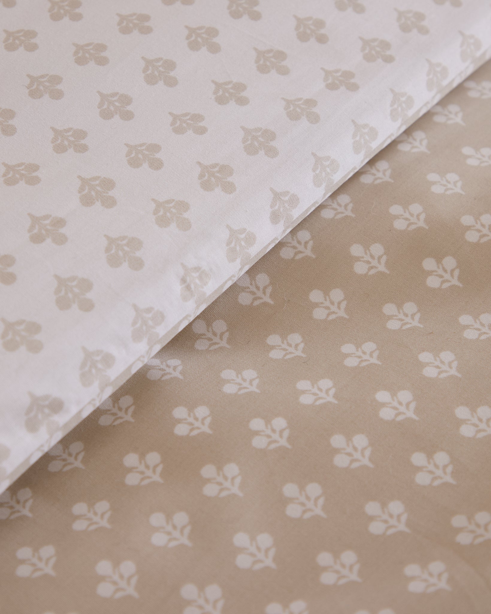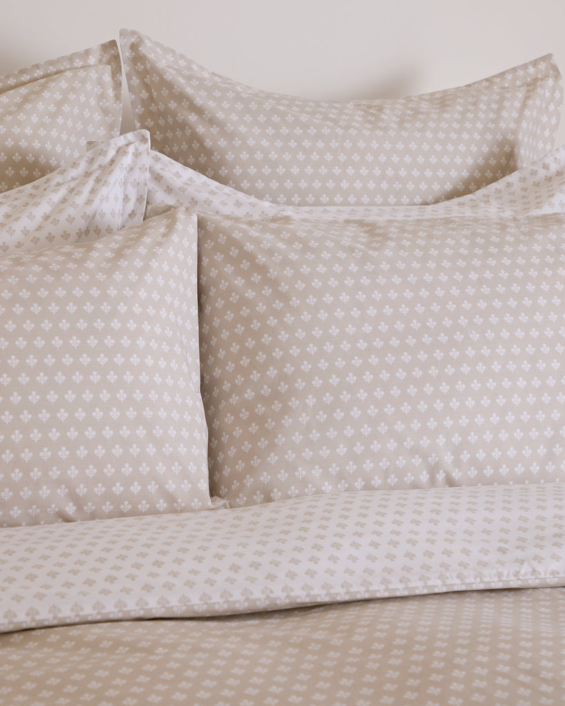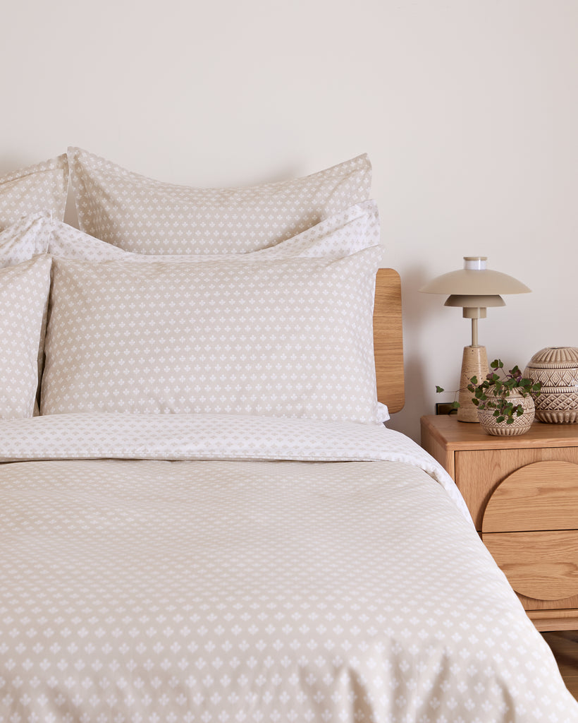 The Foxford Mia Reversible Duvet Set is a timeless design inspired by soft Irish florals. Woven from 100% cotton percale, it offers breathable comfort with a smooth, crisp finish. Featuring a delicate repeat pattern in soft, neutral tones, this reversible set allows you to easily switch up your bedroom style.