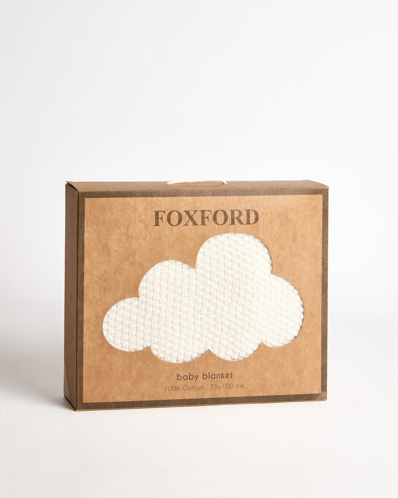 This is a cellular cotton blanket To ensure the highest quality cotton and craftsmanship, we have collaborated with our trusted Portuguese partner to develop a soft, breathable blanket, suitable for even the most sensitive skin. Each blanket is expertly made in their mill and finished with a bespoke FOXFORD baby care label – an adorable finishing touch in any crib and the perfect future heirloom for a new family. All FOXFORD baby blankets will arrive beautifully gift wrapped in a presentation box.