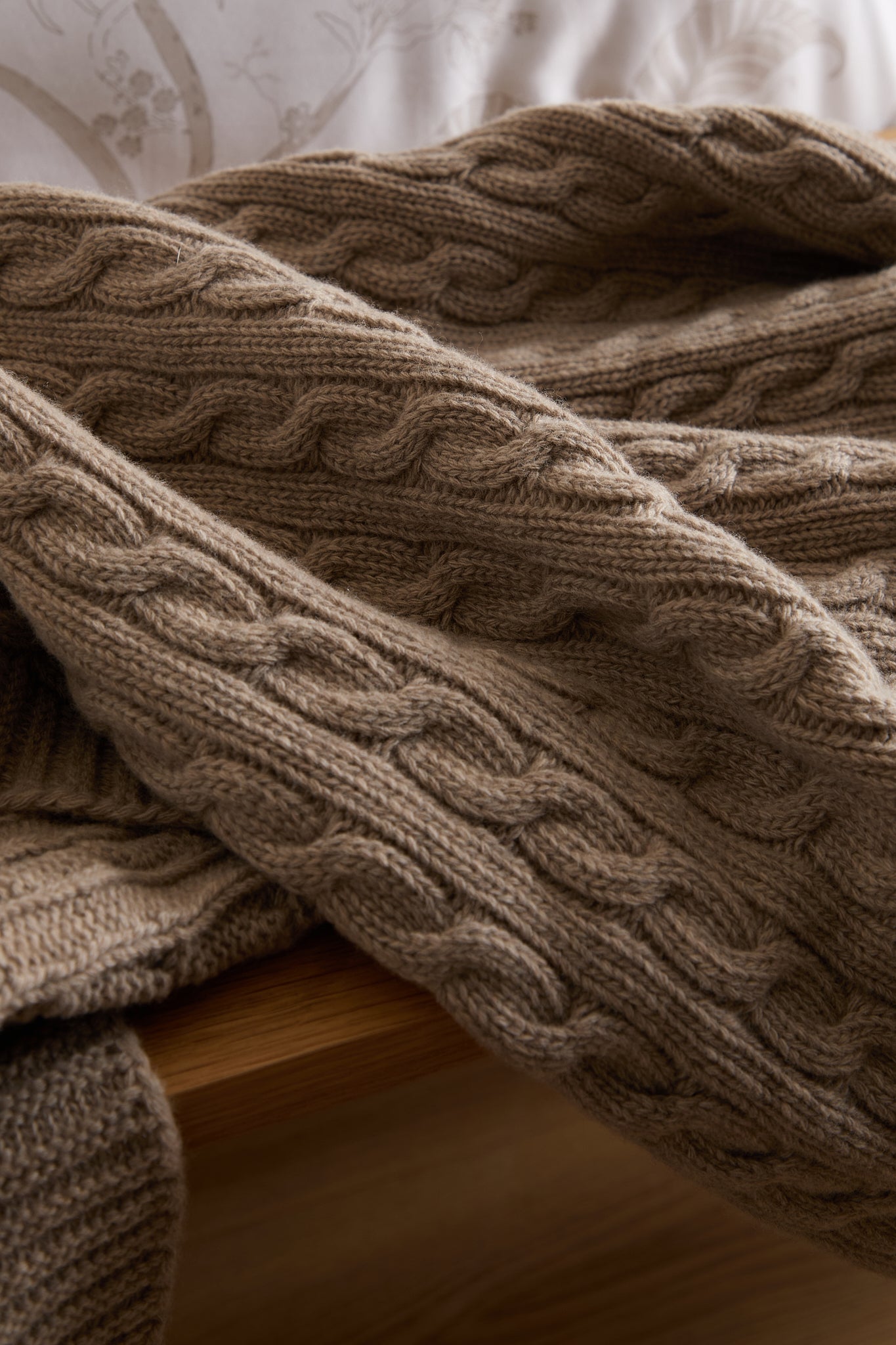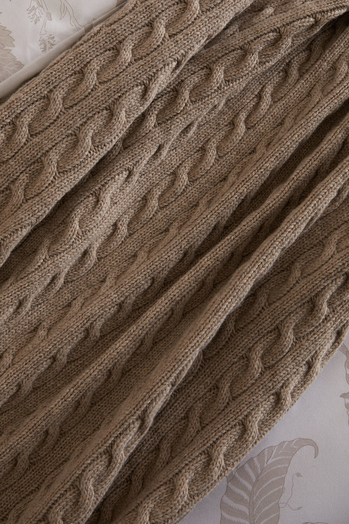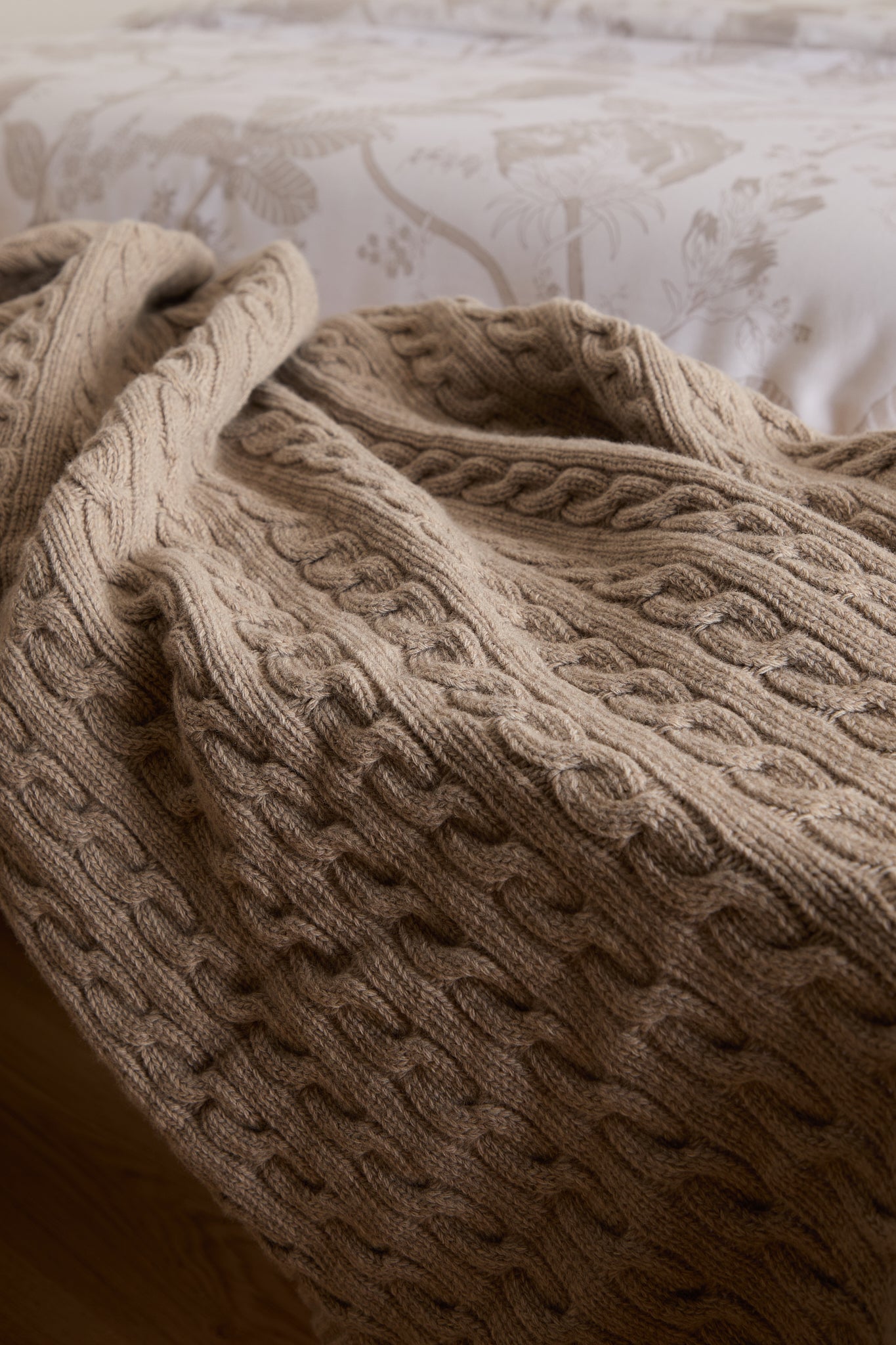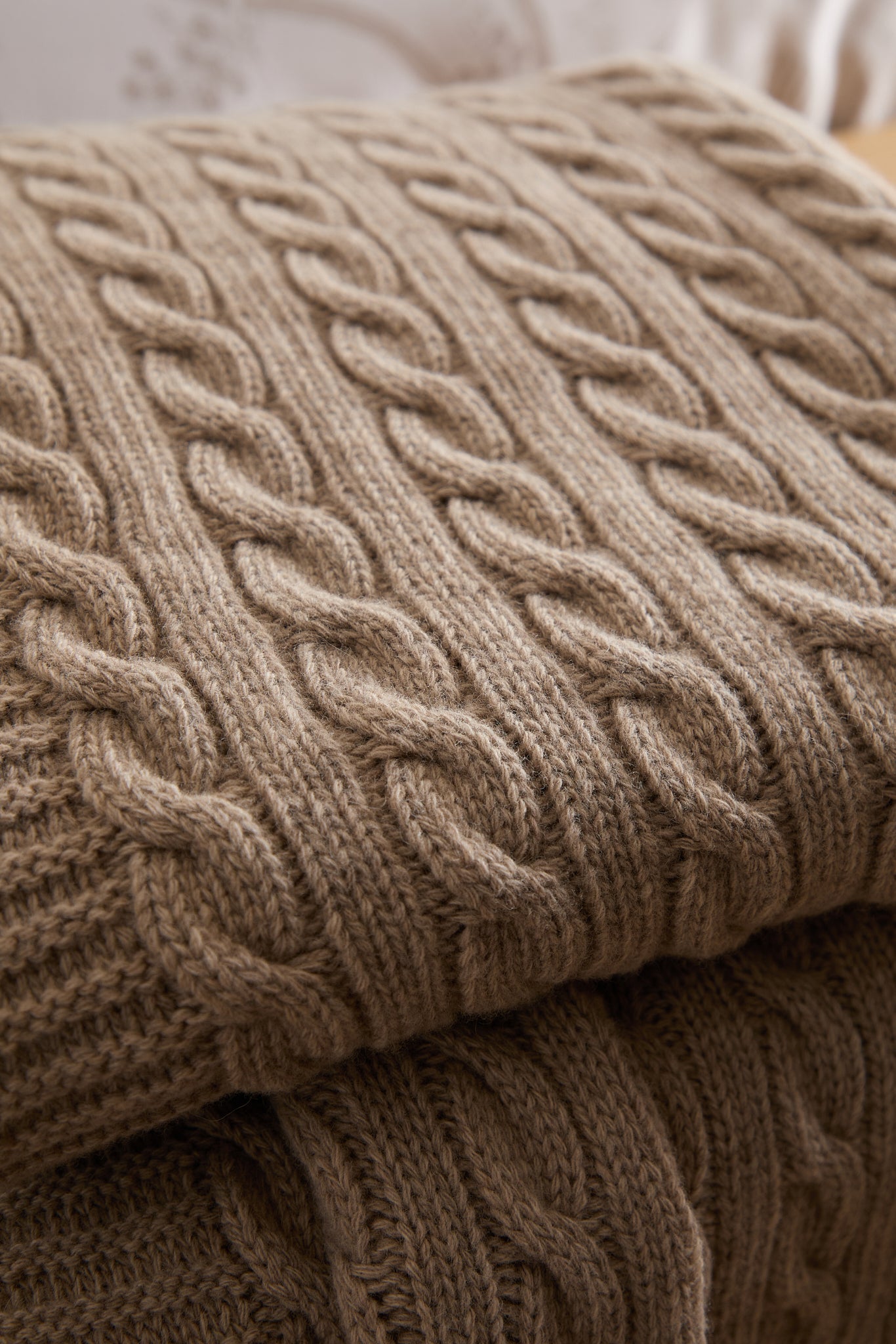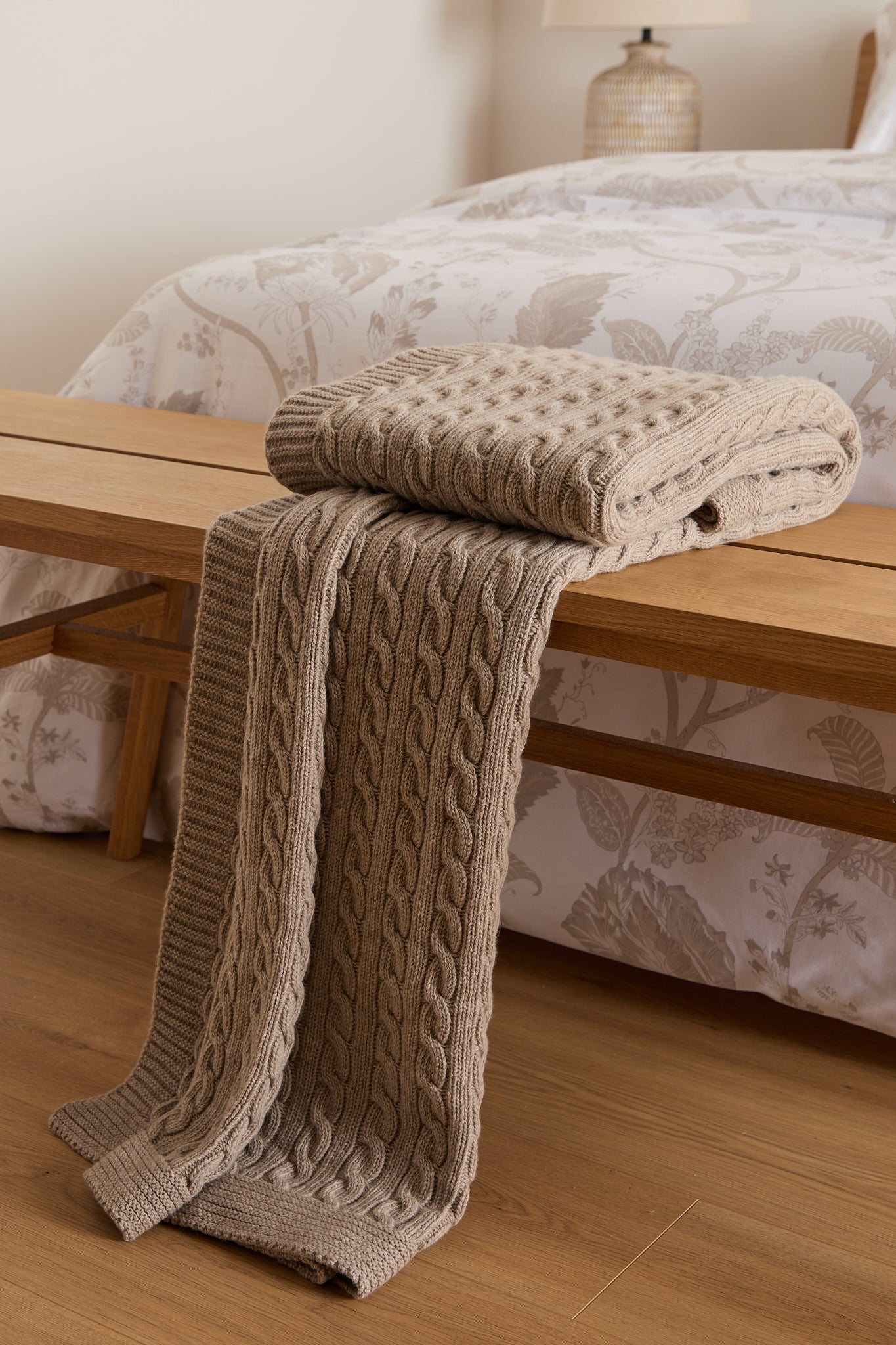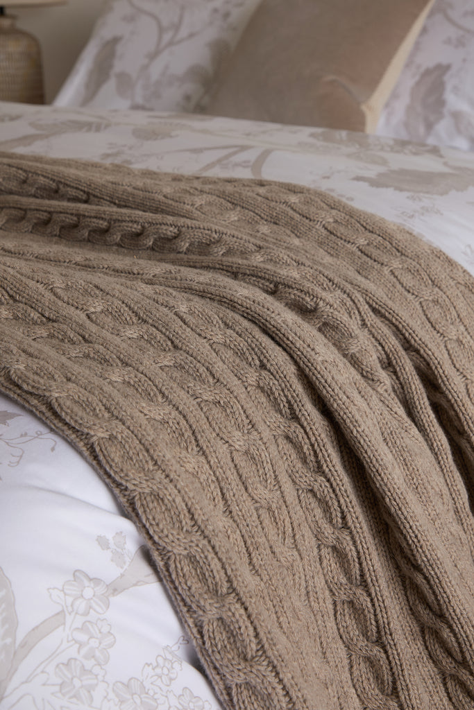The Foxford Cable Knit Beige Merino Bed Blanket (130x170 cm) is designed in Ireland, combining luxurious merino wool with expert craftsmanship. This soft, breathable blanket features a timeless cable knit pattern, offering texture and elegance. Its gentle beige shade complements a range of bedroom décors, while its perfect size makes it ideal for layering or as a standalone piece. Experience the warmth and sophistication of Irish design with a blanket that promises lasting comfort and timeless appeal for your home.