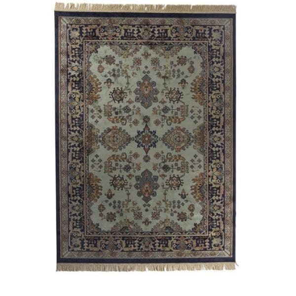 RAZ is a rug with decorative fringes. The rug was made of viscose and polyester blend. The rug from the bottom was covered with synthetic rubber, which resulted in a non-slip coating.