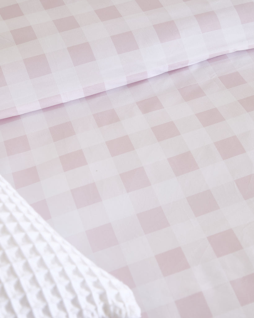 The fresh gingham pattern adds a playful yet sophisticated touch, perfect for brightening any bedroom.