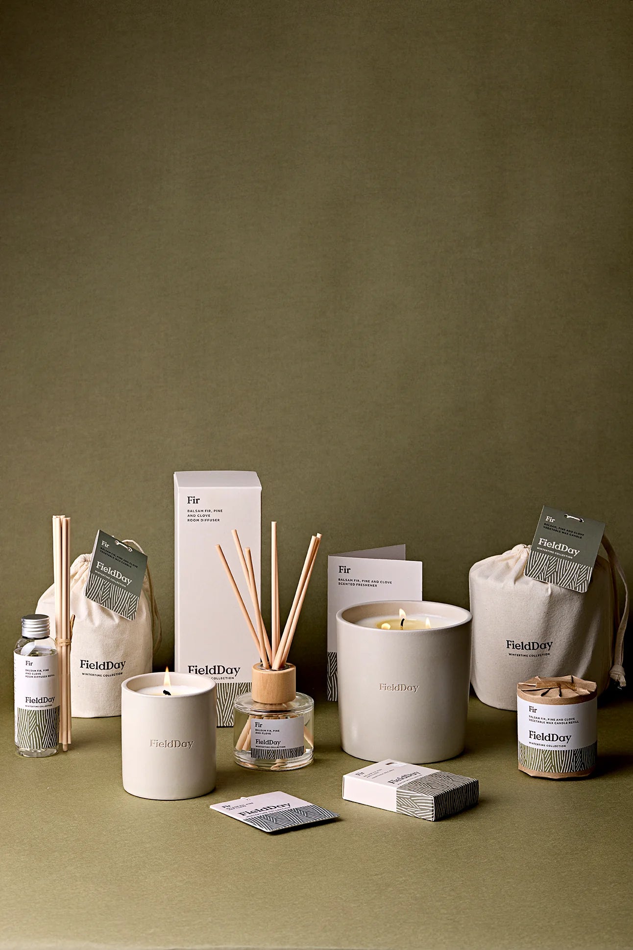 FieldDay All Calm Diffuser features a calming blend of Eucalyptus, Spearmint, and Orange. Housed in a glass jar with a wooden lid and natural unbleached reeds, it gently perfumes your space for up to 10 weeks. Crafted with an eco-friendly, renewable solvent, this 100ml diffuser offers a sustainable, vegan-friendly, and cruelty-free fragrance experience. The packaging is sustainably sourced and printed using vegetable-based inks, reflecting a commitment to environmental responsibility.