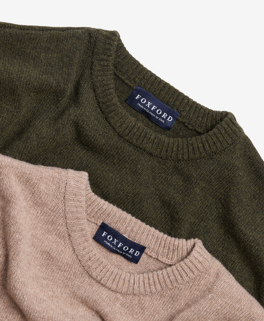 Meet our Green Round Neck Lambswool Sweater, effortless warmth with everyday ease. Unisex fit for versatile, simple styling. Knitted in washable lambswool, it’s soft, naturally breathable and light enough for year-round layering. The classic round neck sits neatly over a tee or shirt, while rib trims keep the shape season after season. Made in Mayo, it brings Foxford craftsmanship to a timeless wardrobe staple you’ll reach for again and again.