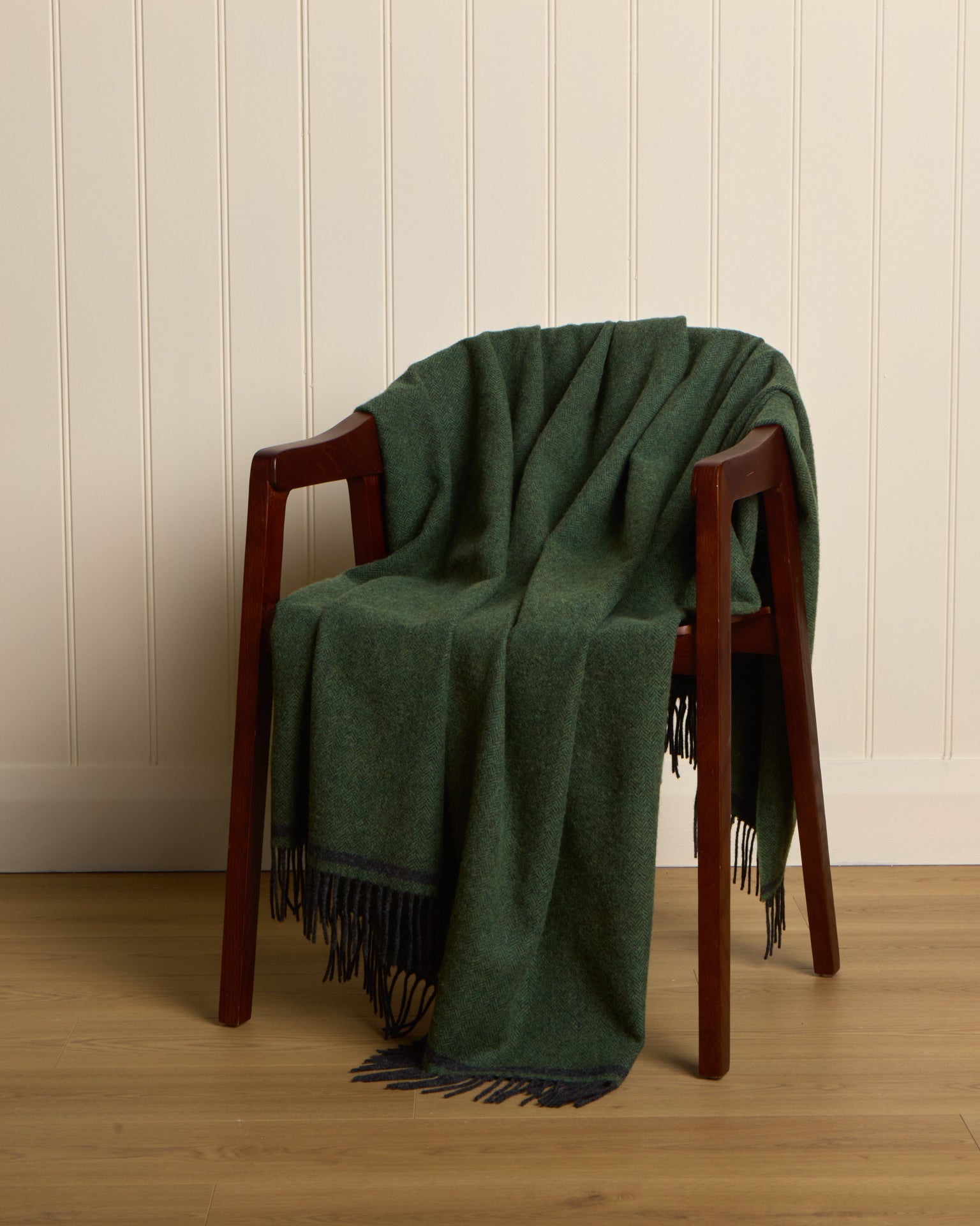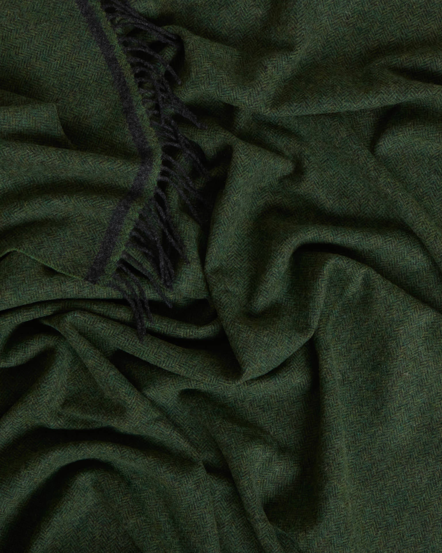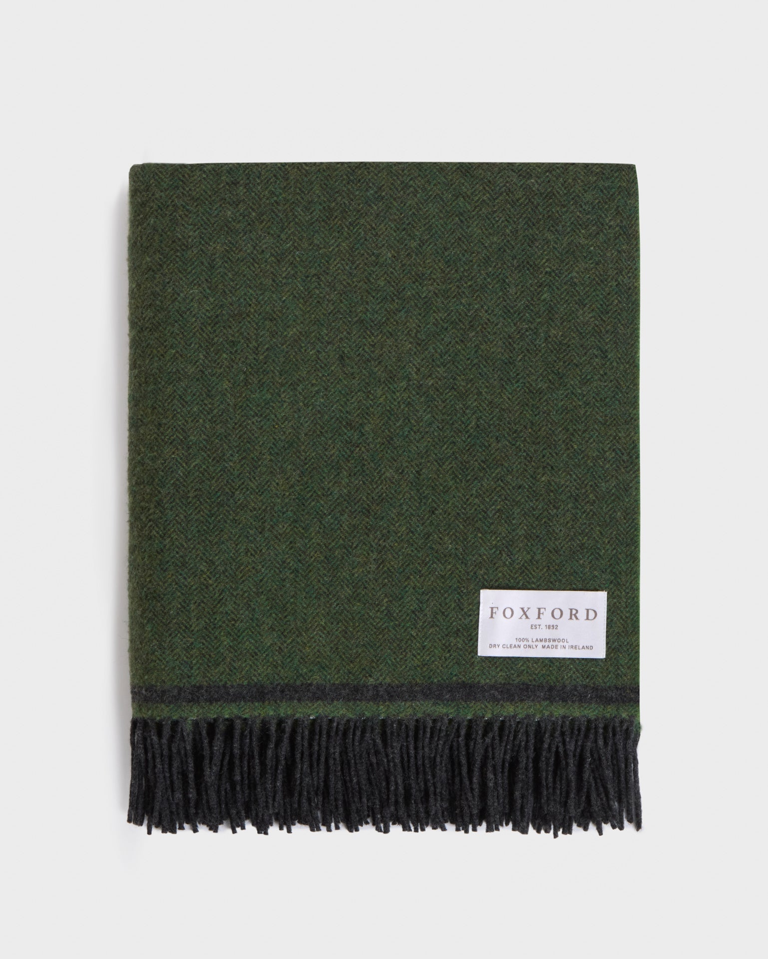 Crafted from premium lambswool in our County Mayo mill, the Eoghan Throw showcases expert weaving in a classic herringbone design. A rich leaf green base is elevated with deep graphite grey tones, creating depth and timeless appeal.