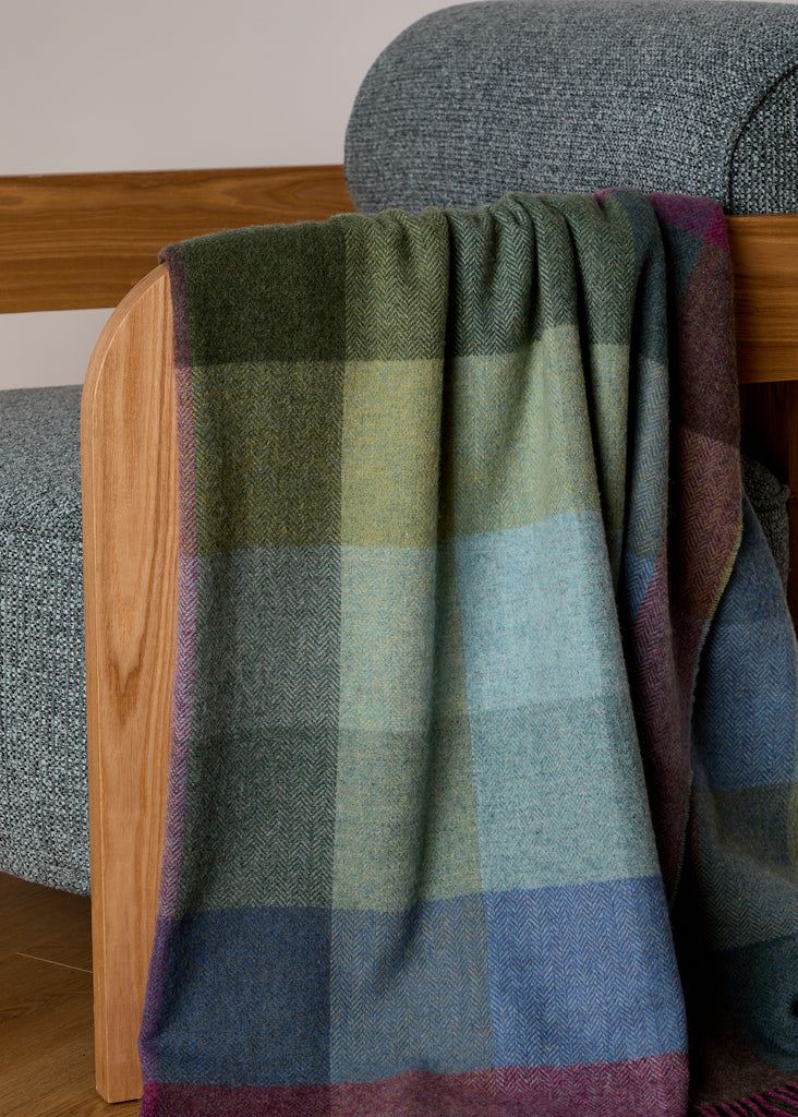 Inspired by the soft, natural hues of the Irish landscape, the Foxford Kilmeaden Lambswool Throw blends gentle mauve, pink, and green in a beautifully muted check design. Woven in our Foxford mill in County Mayo, this throw is crafted from premium lambswool for a soft and warm feel. The delicate colour palette adds a touch of understated elegance to any home, whether draped over a sofa or layered on a bed. This throw is timeless and effortlessly stylish, a true celebration of Irish craftsmanship.