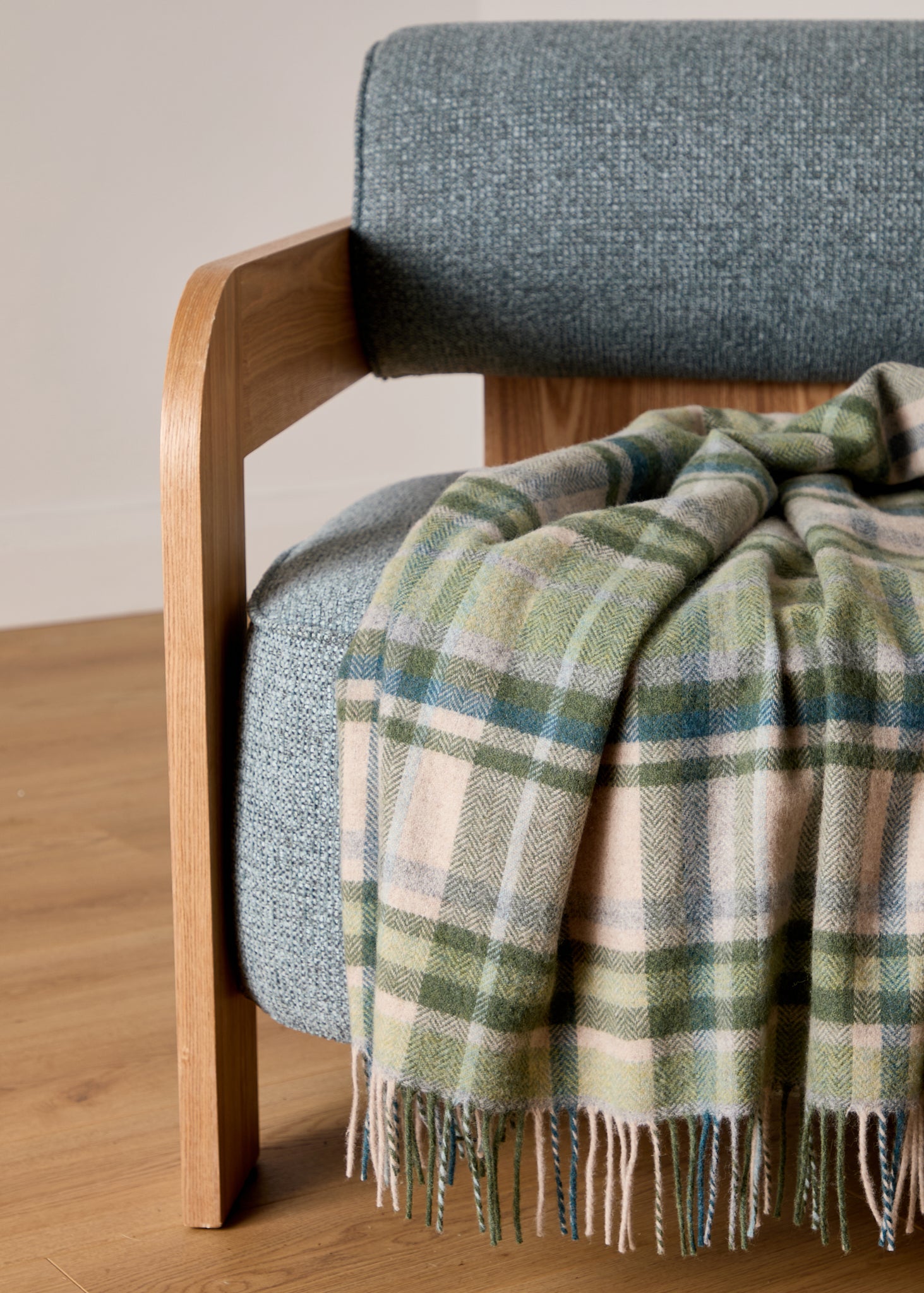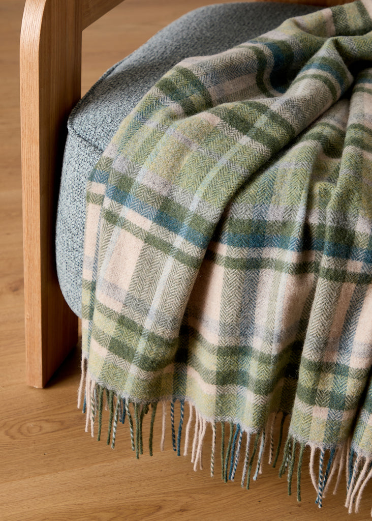 Inspired by the rolling hills and rugged beauty of Slieveboy, the Foxford Slieveboy Lambswool Throw is a timeless piece of Irish craftsmanship. Woven in our Foxford mill in County Mayo, this luxurious throw features a rich tartan-green design that evokes the natural tones of the Irish landscape. Made from soft lambswool, it offers exceptional softness and warmth, making it the perfect addition to any home. Whether draped over a sofa or layered on a bed, this throw brings comfort, elegance, and heritage to your space.