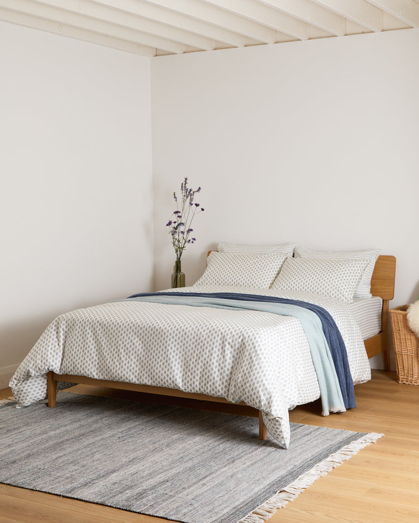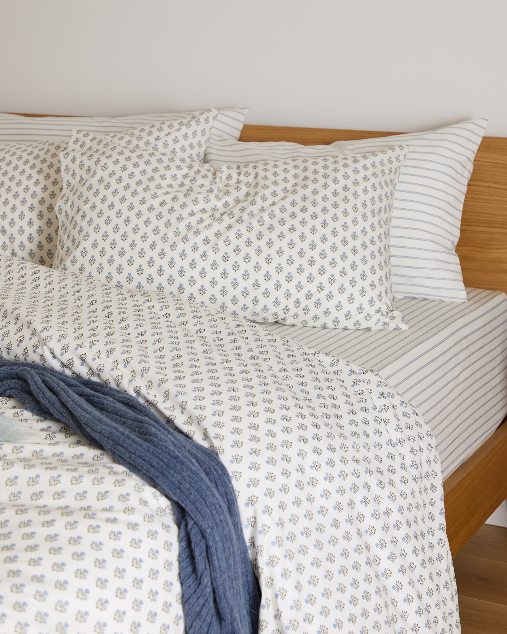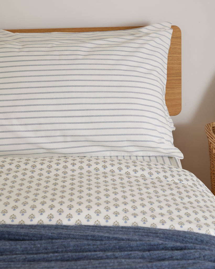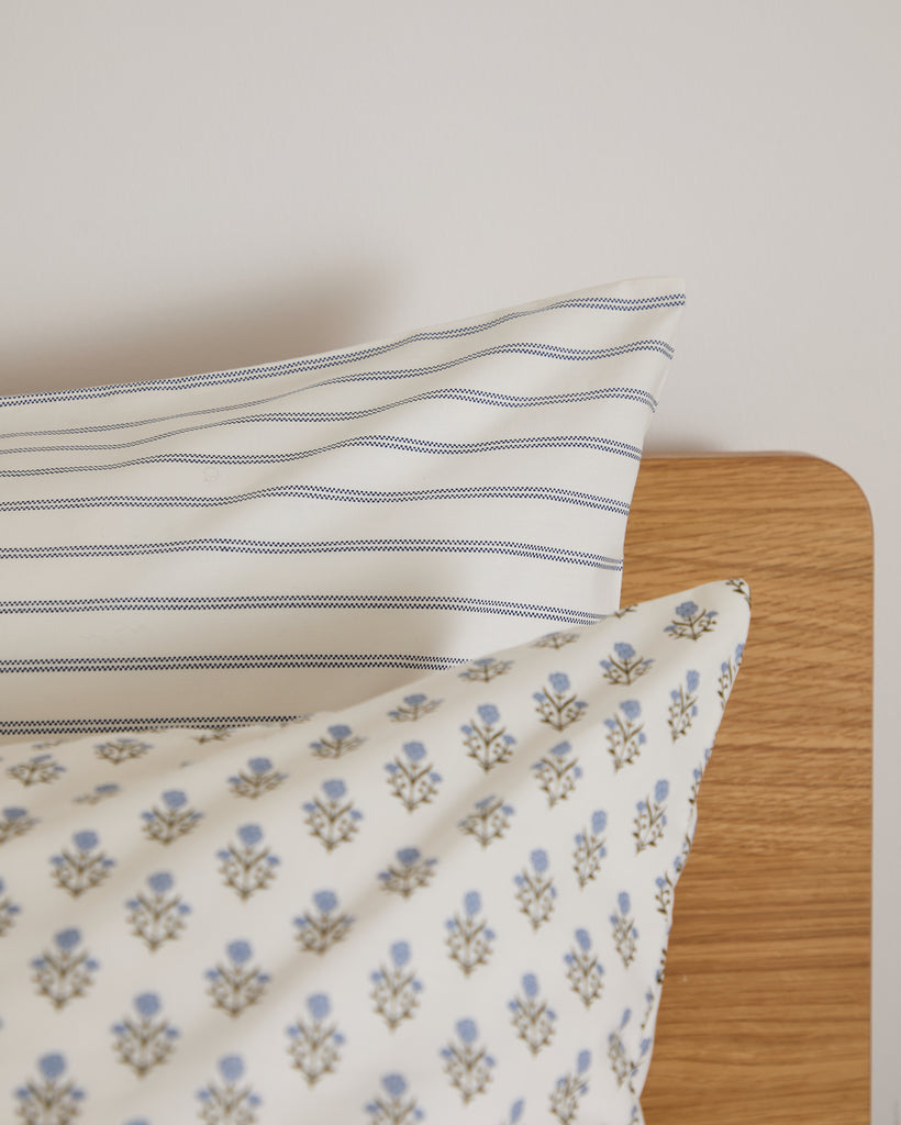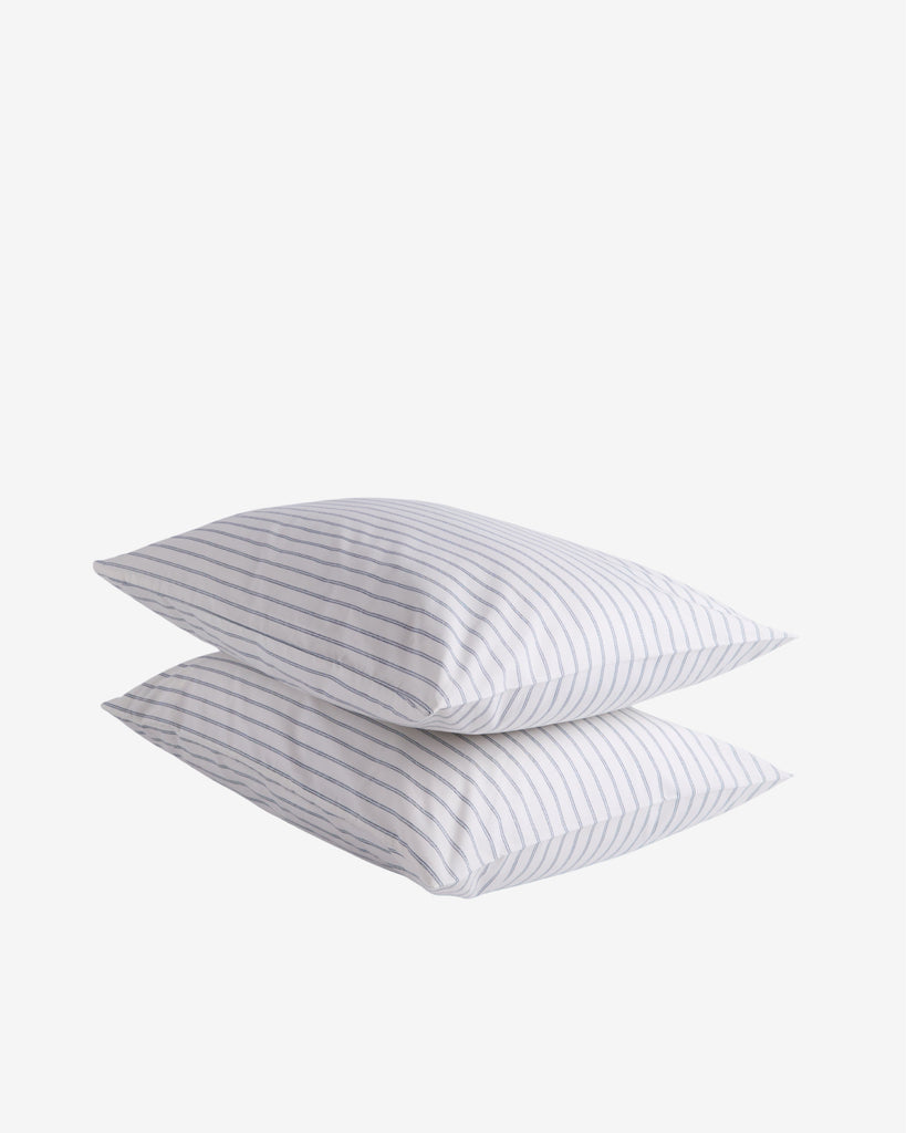 The Foxford Emma Pinstripe Pillowcase Set features a calm, rhythmic pinstripe pattern. Made in Portugal from 180-thread-count cotton, it offers a refined and soft feel. This set contains two pillowcases designed for maximum comfort.
