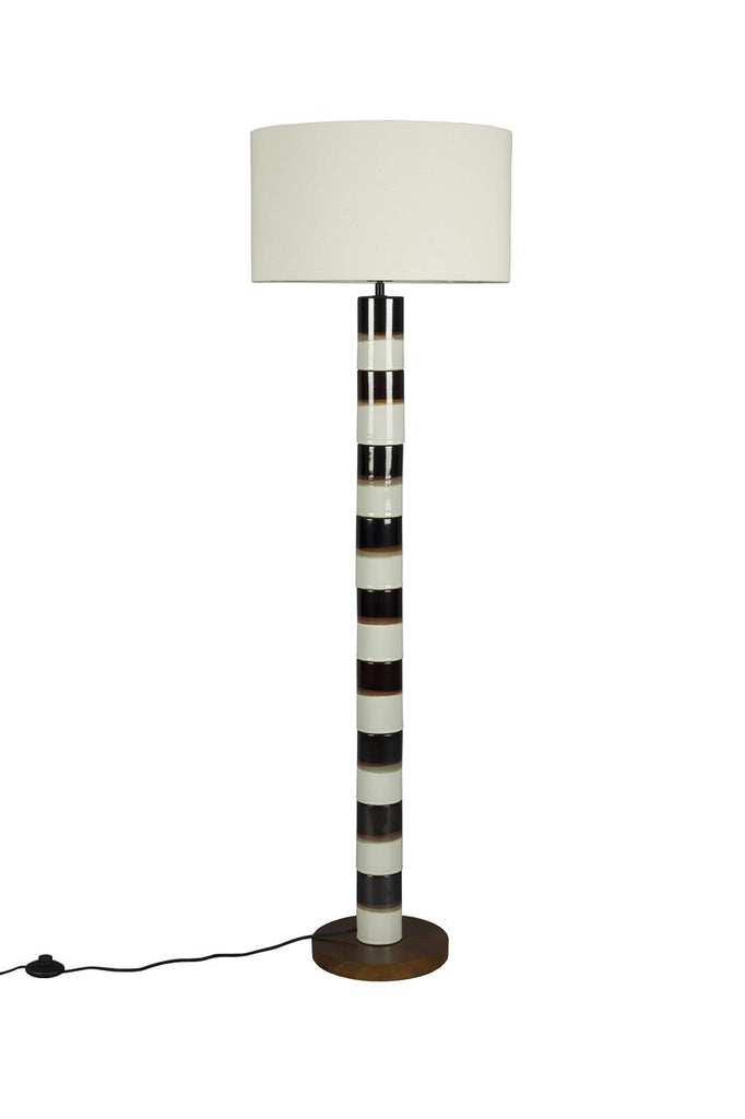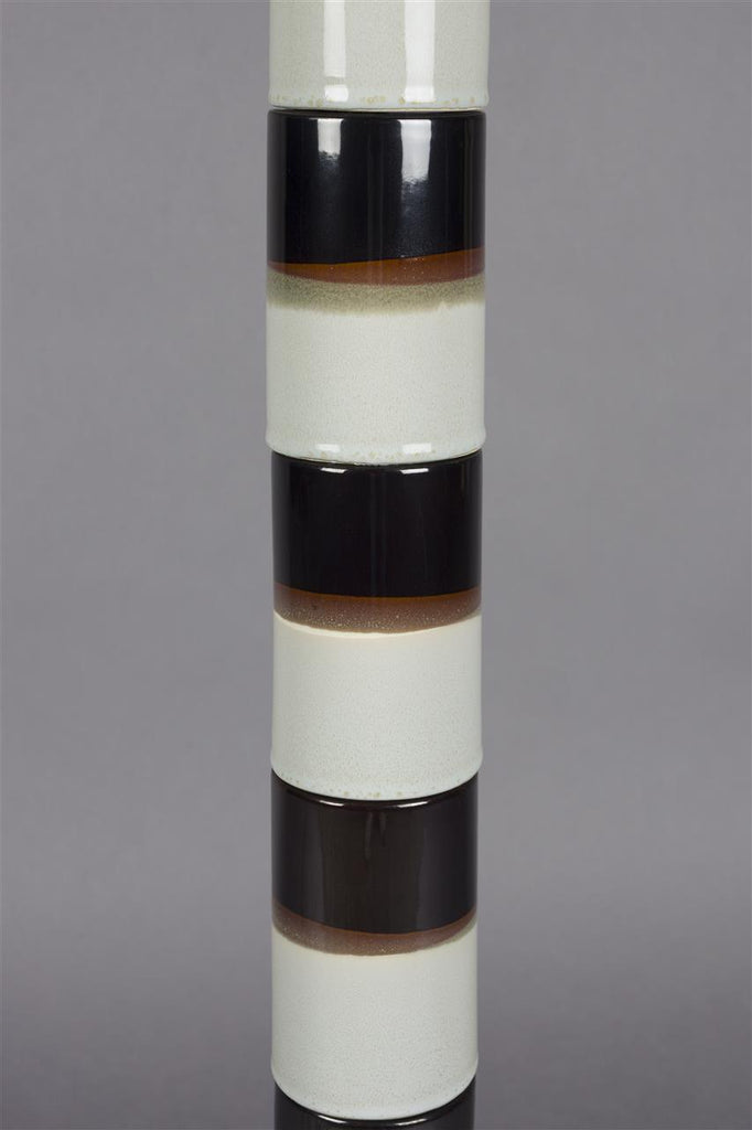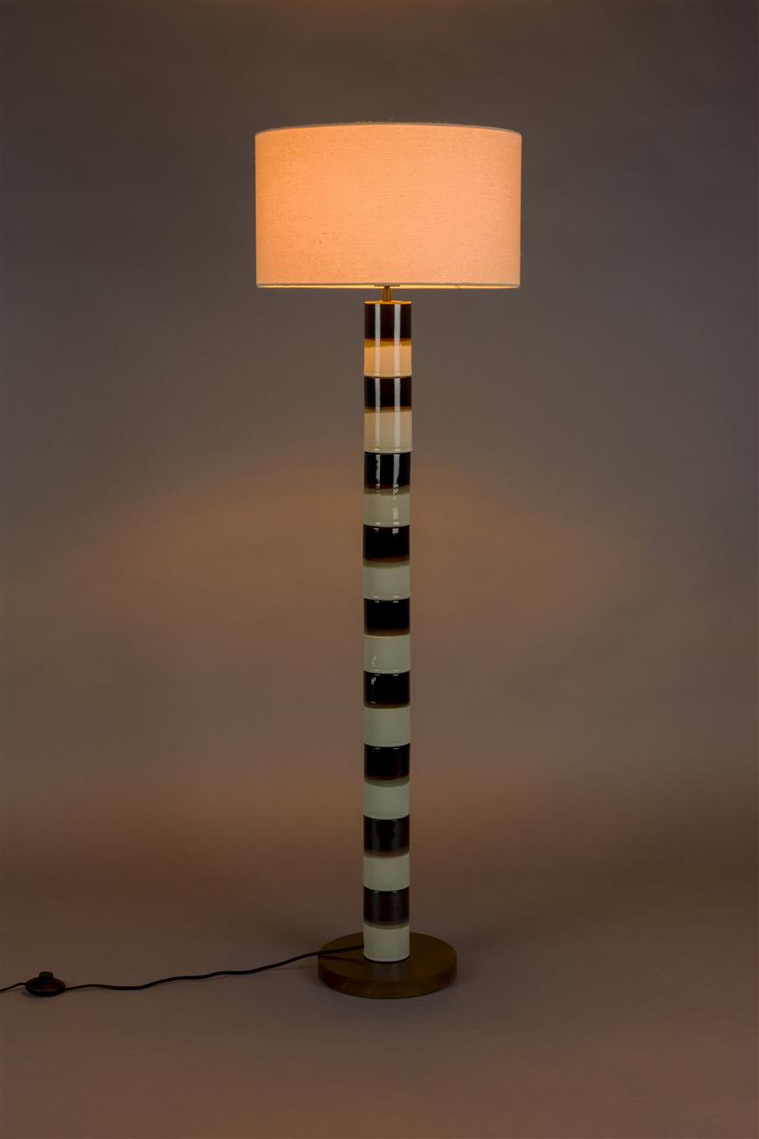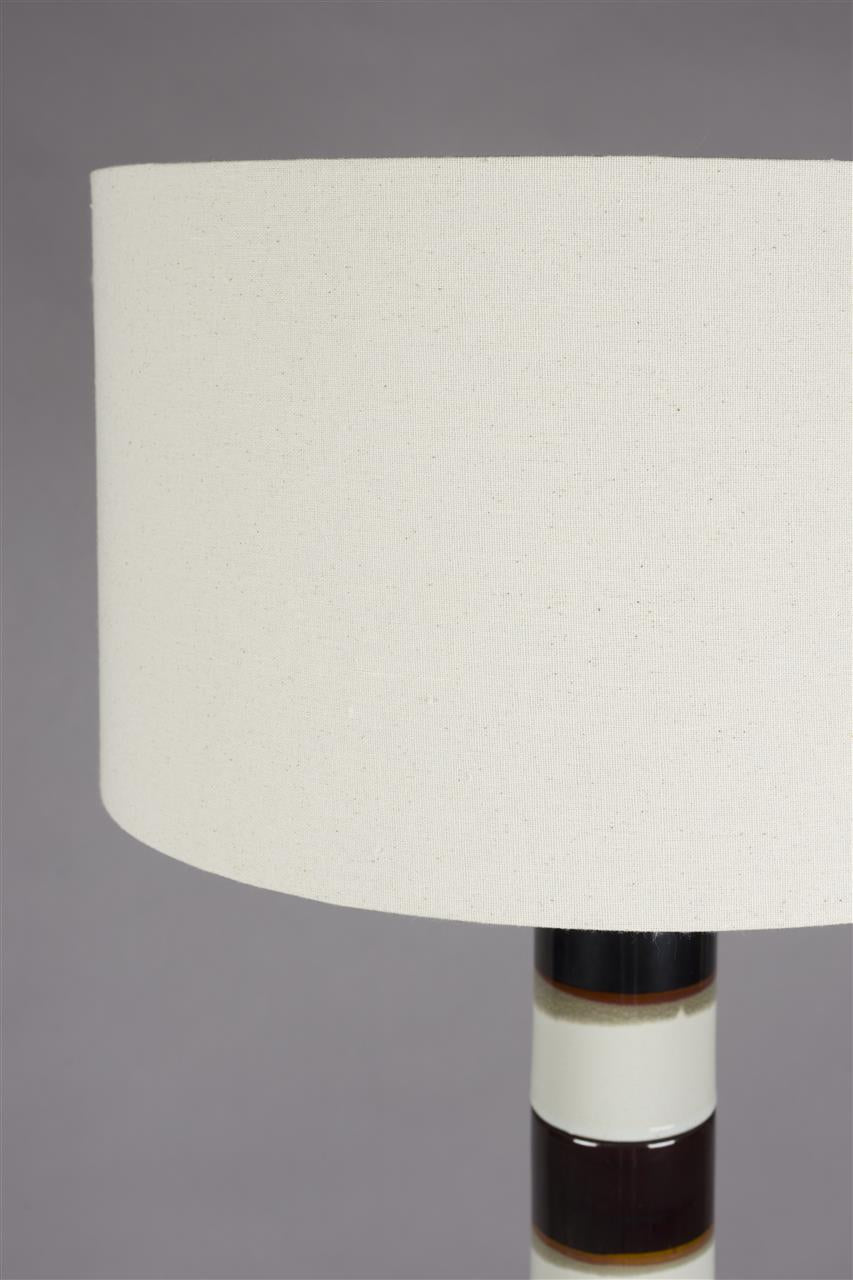 With the Dutchbone Vertigo in your home, you'll instantly feel like enjoying a cosy afternoon, filled with good stories and a cup of excellent coffee. The base of this lamp is inspired by stacked ceramic coffee cups, with the flowing colours evoking a retro tableware style. The dark walnut wood base and the light cotton lampshade complete the look, adding extra warmth to the overall design.