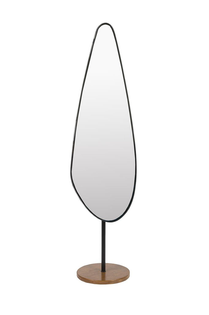 The Dropz mirror combines sophistication and functionality, making it an excellent addition to any living space. Standing 135 cm tall, it features a black metal frame and legs paired with a dark brown lacquered base. Its distinctive shape enhances room brightness while offering practical usability. Its versatile design complements both contemporary and traditional décor styles with ease.