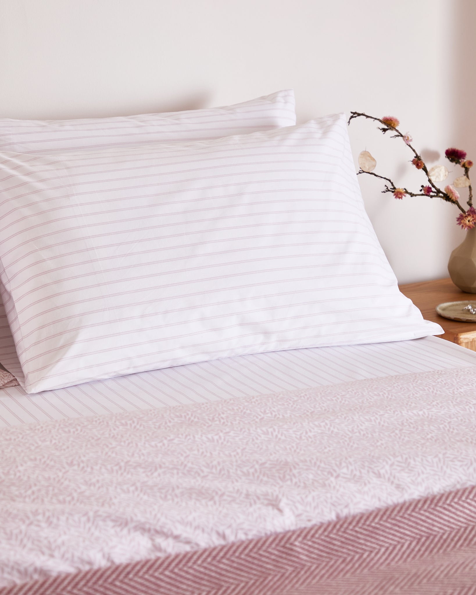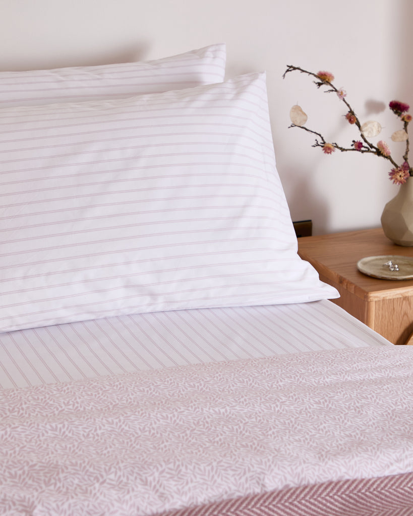 Add a touch of elegance to your bedding with the Foxford Olivia Stripe Pillowcase Set. Designed to complement the Olivia collection, these pillowcases feature a timeless stripe pattern in soft pink tones, perfect for a sophisticated, serene bedroom.