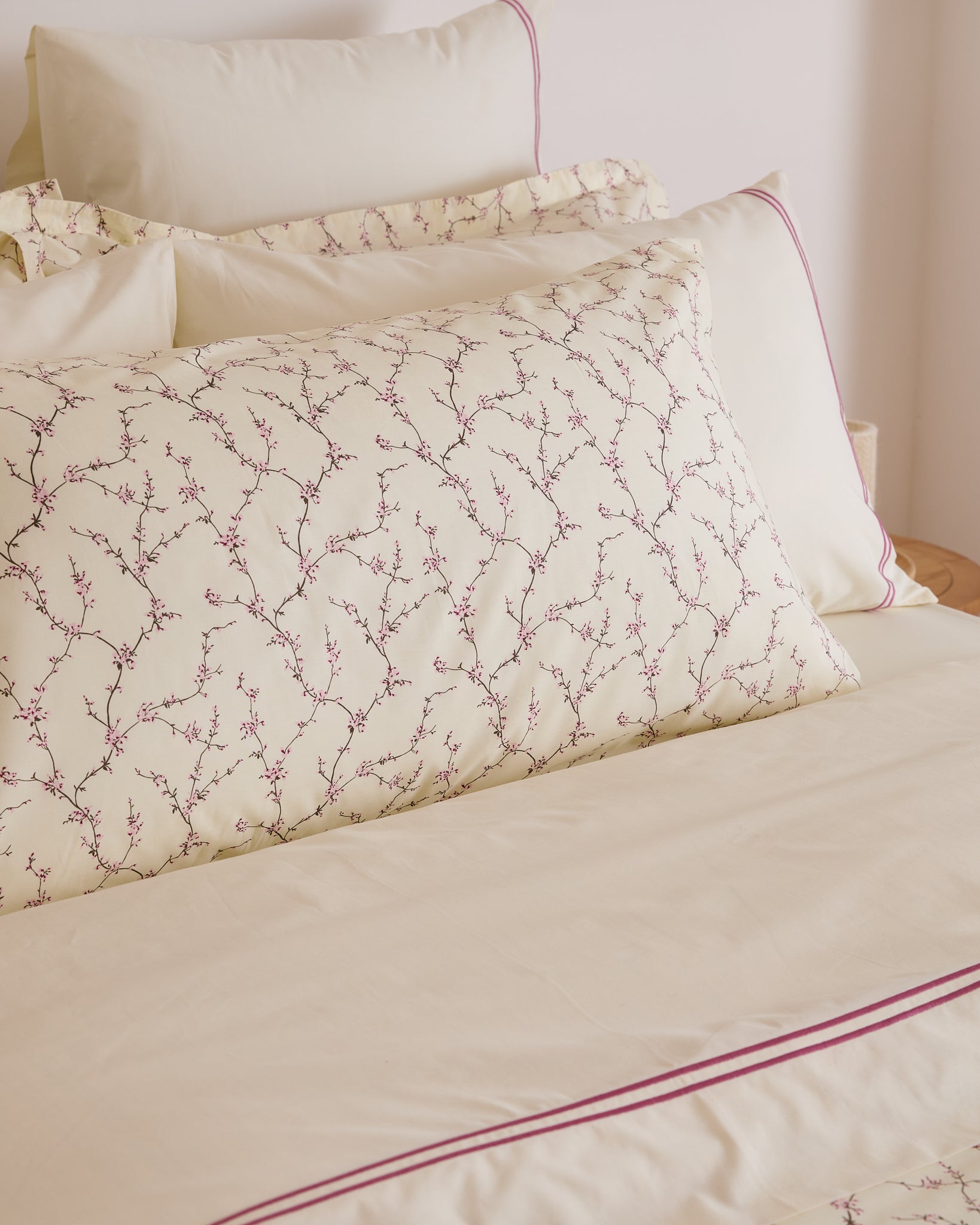Complete your AW25 bedding collection with the Foxford Tess King Pillowcase Set. Made from 100% premium 300-thread count cotton and woven in Portugal, these pillowcases feature the delicate cherry blossom print on a soft cream base, matching the Tess Duvet Set and Fitted Sheet for a beautifully coordinated bedroom look.