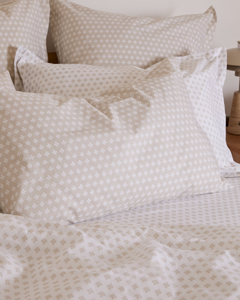 The Foxford Mia Nacre Pillowcase Pair is crafted from 100% cotton with a luxurious 300 thread count. Designed in a soft nacre tone to complement the Mia bedding collection, these pillowcases feature Foxford’s delicate floral motif for a subtle, timeless finish.