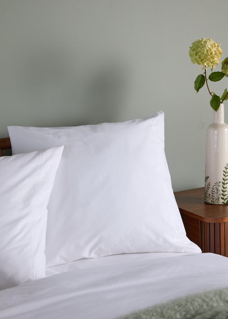 Foxford Tess Oxford Square Pillowcase AW25, 300-thread count, cherry blossom print on cream base, classic Oxford square design