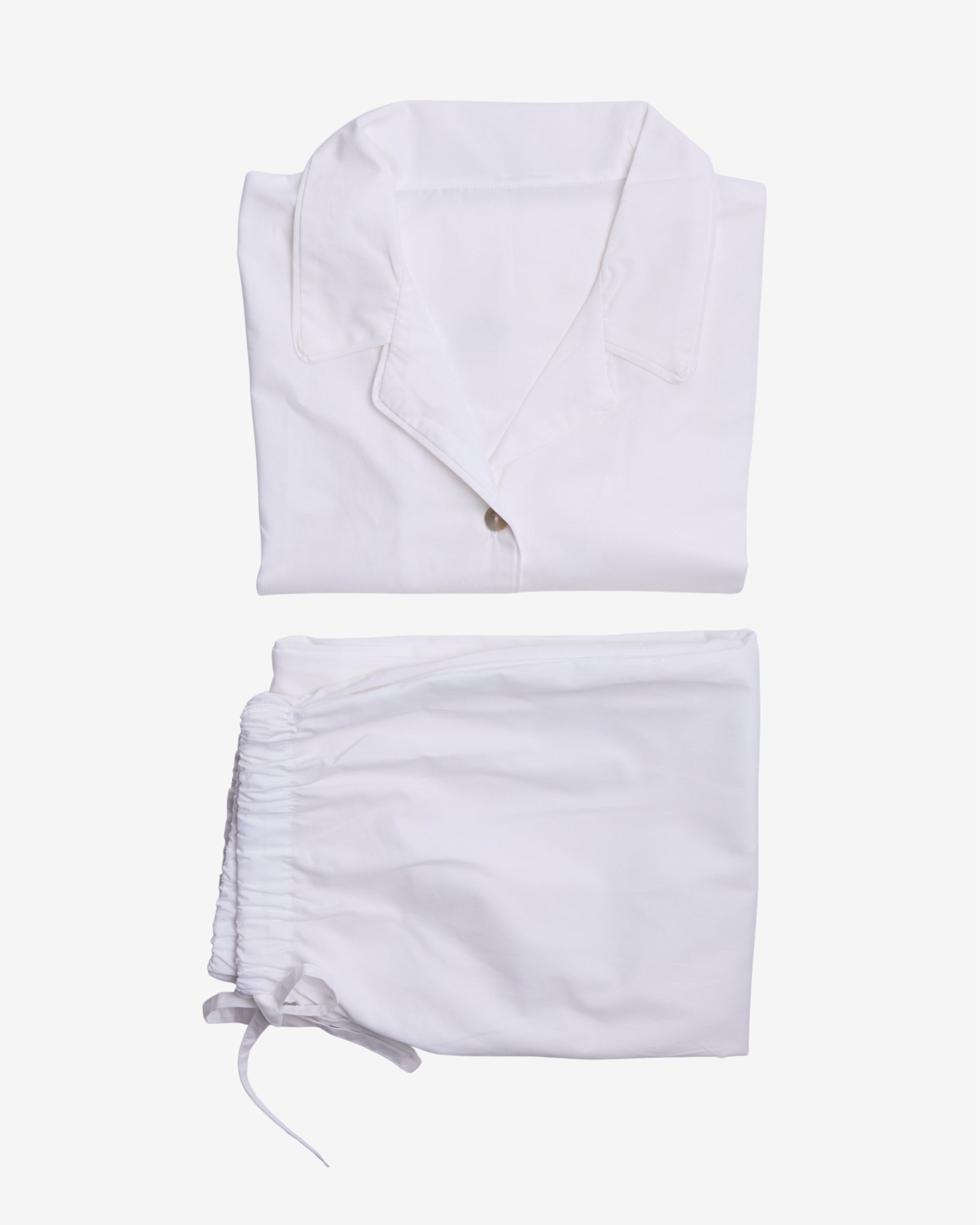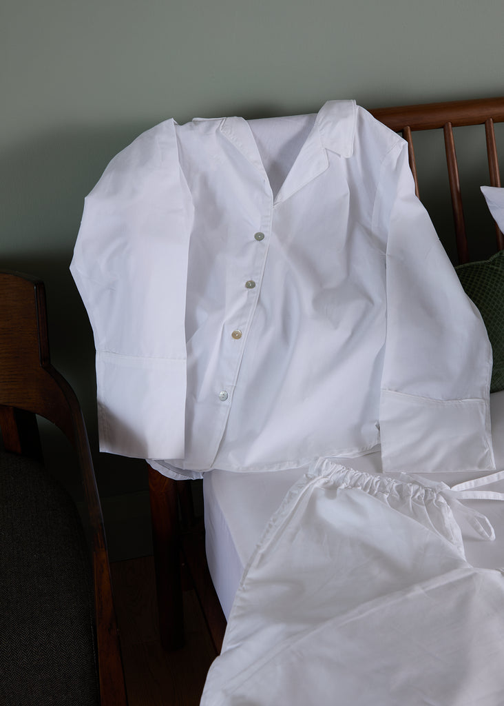 Featuring a crisp white finish with timeless detailing. Thoughtfully designed in Ireland, the Foxford Evelyn Cotton Pyjamas are perfect for lounging or sleeping.