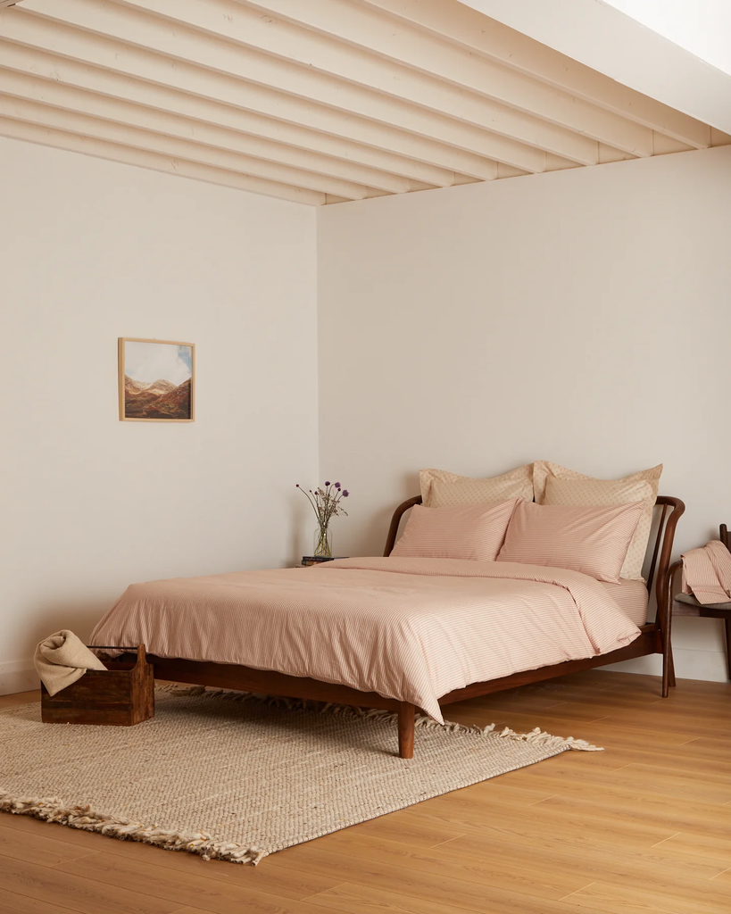 This luxurious fitted sheet is made from 180-thread-count combed cotton in Portugal, perfectly matching the cornflower duvet set. The calming, repeating ticking pattern adds a touch of summer to your bedding collection. With a deep pocket of 40cm, this high-quality sheet ensures a comfortable and smooth sleeping experience.