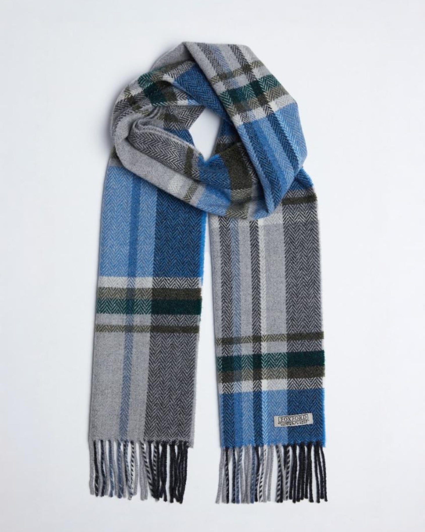 Expertly woven in our County Mayo mill, this blue, green and grey tartan scarf is crafted from 100% lambswool, offering natural softness, warmth, and breathability.