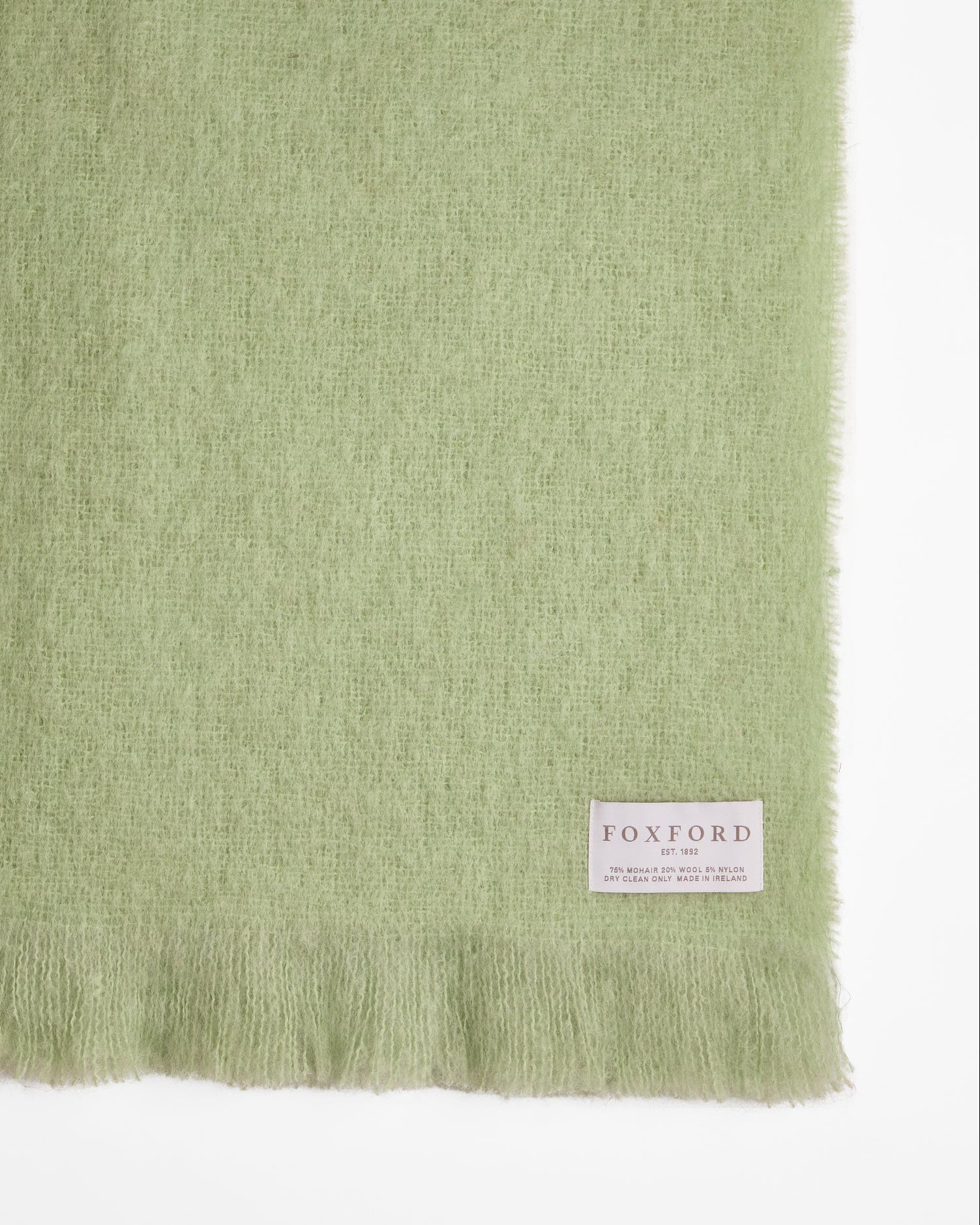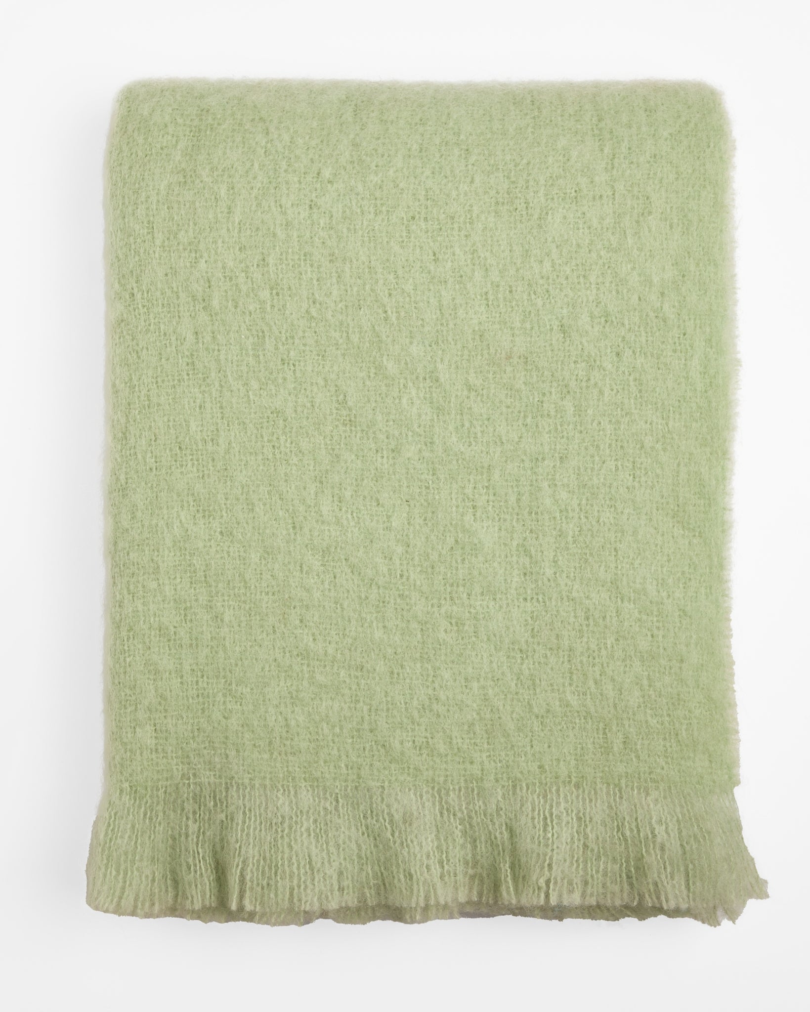 This throw combines a premium blend of mohair and wool fibres, in a subtle lime green shade. It provides warmth while remaining light and offers a luxuriously soft feel, perfect for adding a touch of refined comfort to your home.