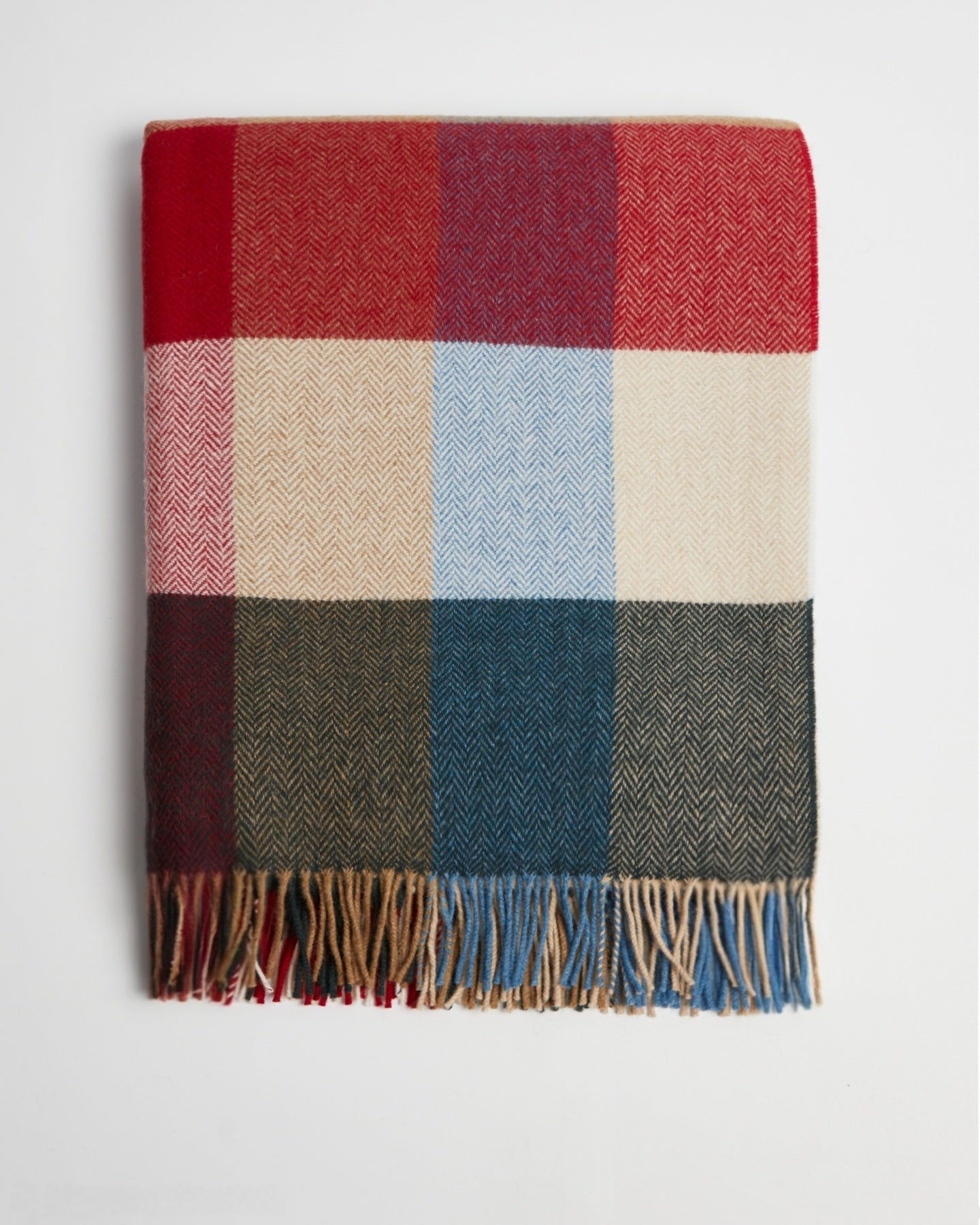 Add some rustic charm to your home with this beautifully soft throw. Expertly crafted in our County Mayo mill, the traditional palette features shades of blue, bone, white, deep green and red. Made from 100% lambswool and finished with a traditional roll fringe, it’s the ideal way to add a touch of warmth to your home.
