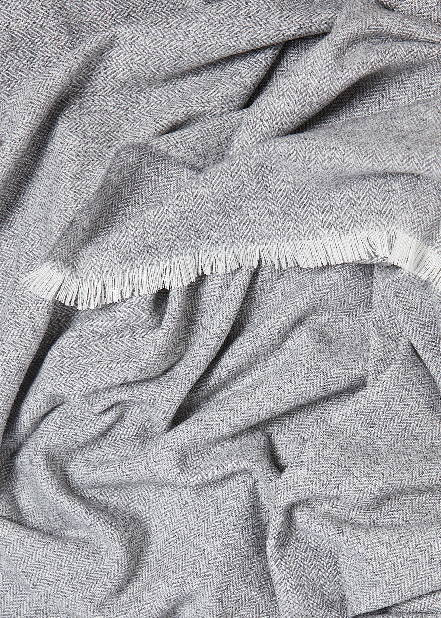 Paying homage to our mill's time-honoured weaving tradition, the blanket blends classic craftsmanship with modern design. Size:140 cm by 260 cm.