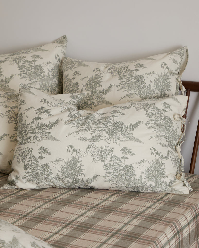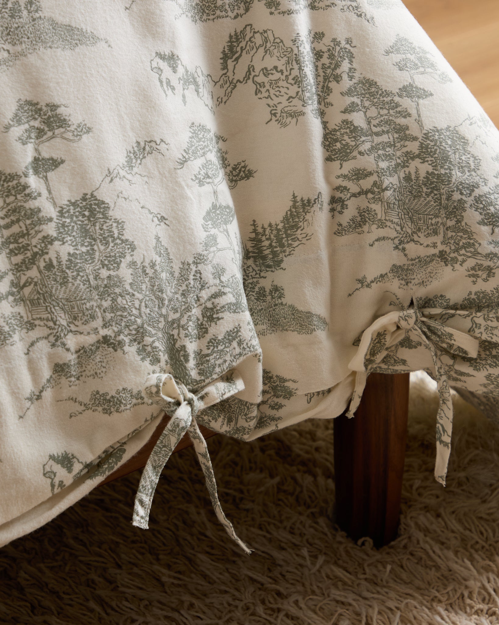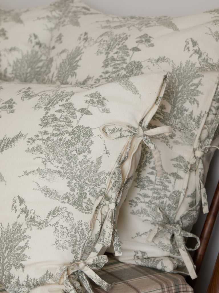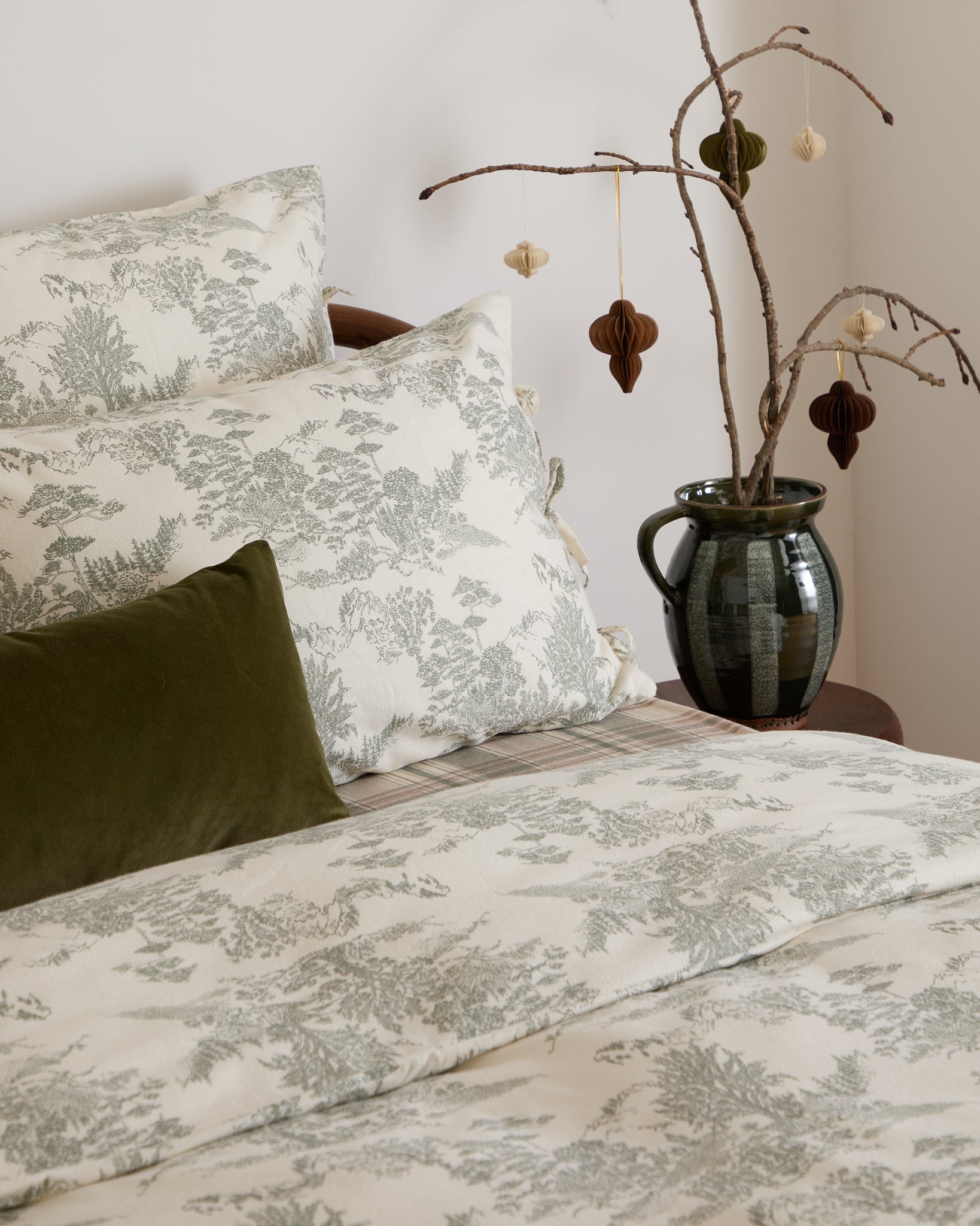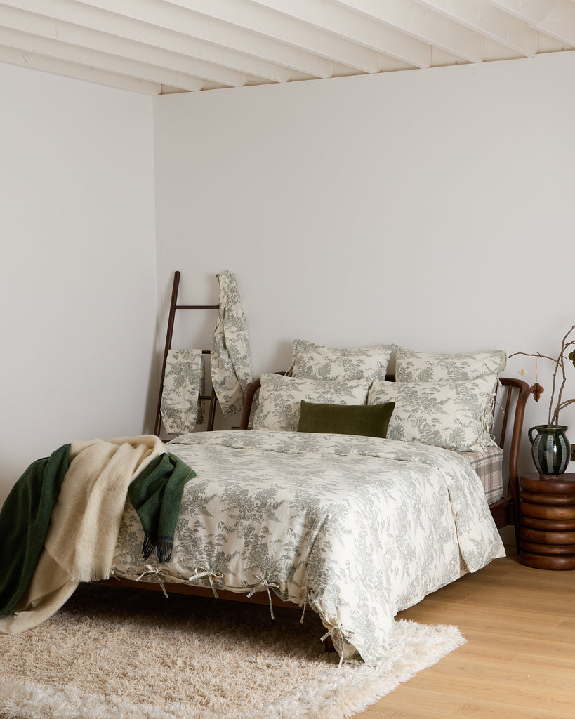 Woven in soft, brushed flannel for the colder months, the Eve Toile Flannel Duvet Set brings warmth and seasonal charm to your bedroom. Designed in Ireland, the Eve Toile features delicate Irish scenery in a rich green, offering a timeless nod to heritage style. With elegant details such as tie fastenings, the Eve Toile Flannel Duvet Set brings a sense of charm to any bedroom.