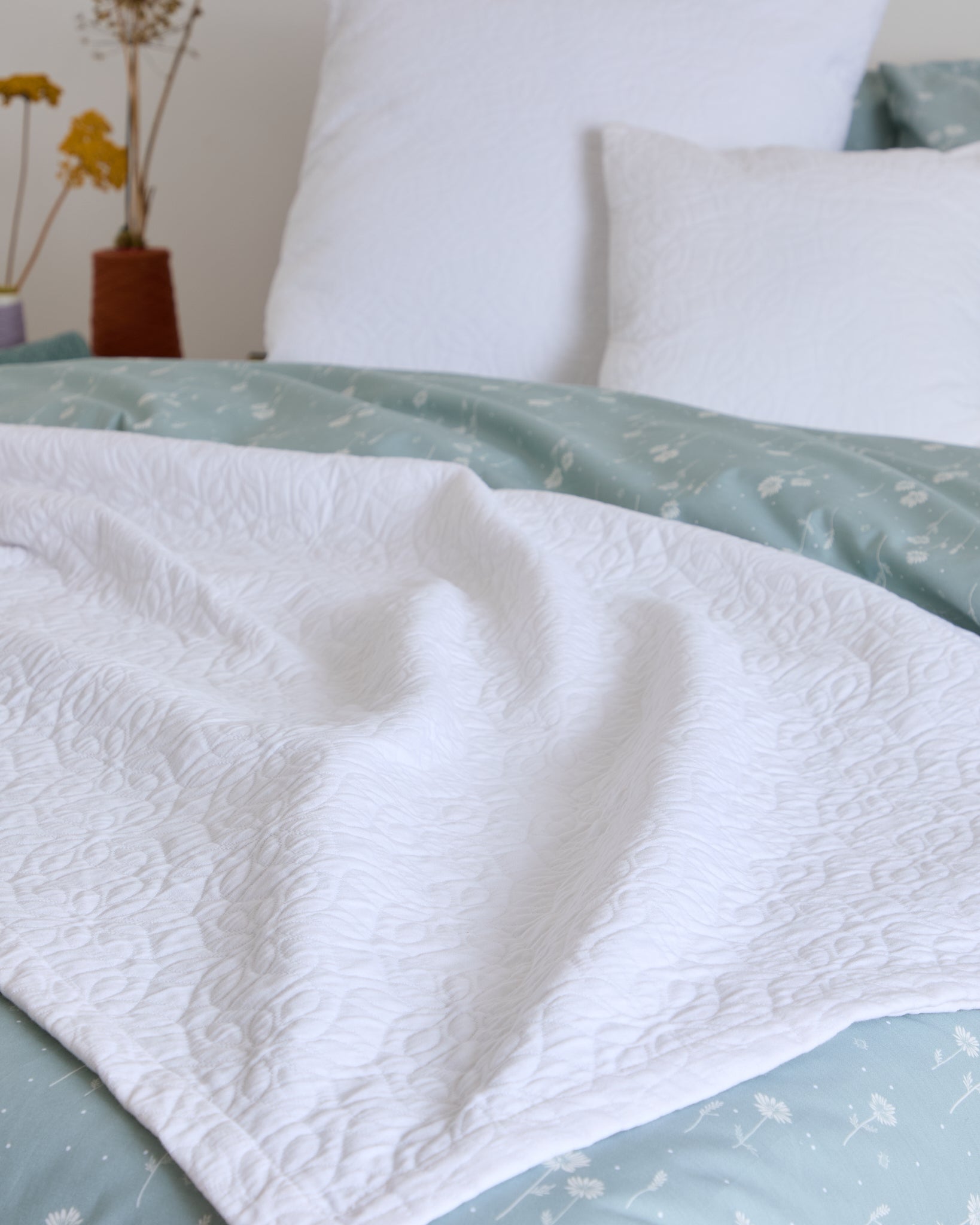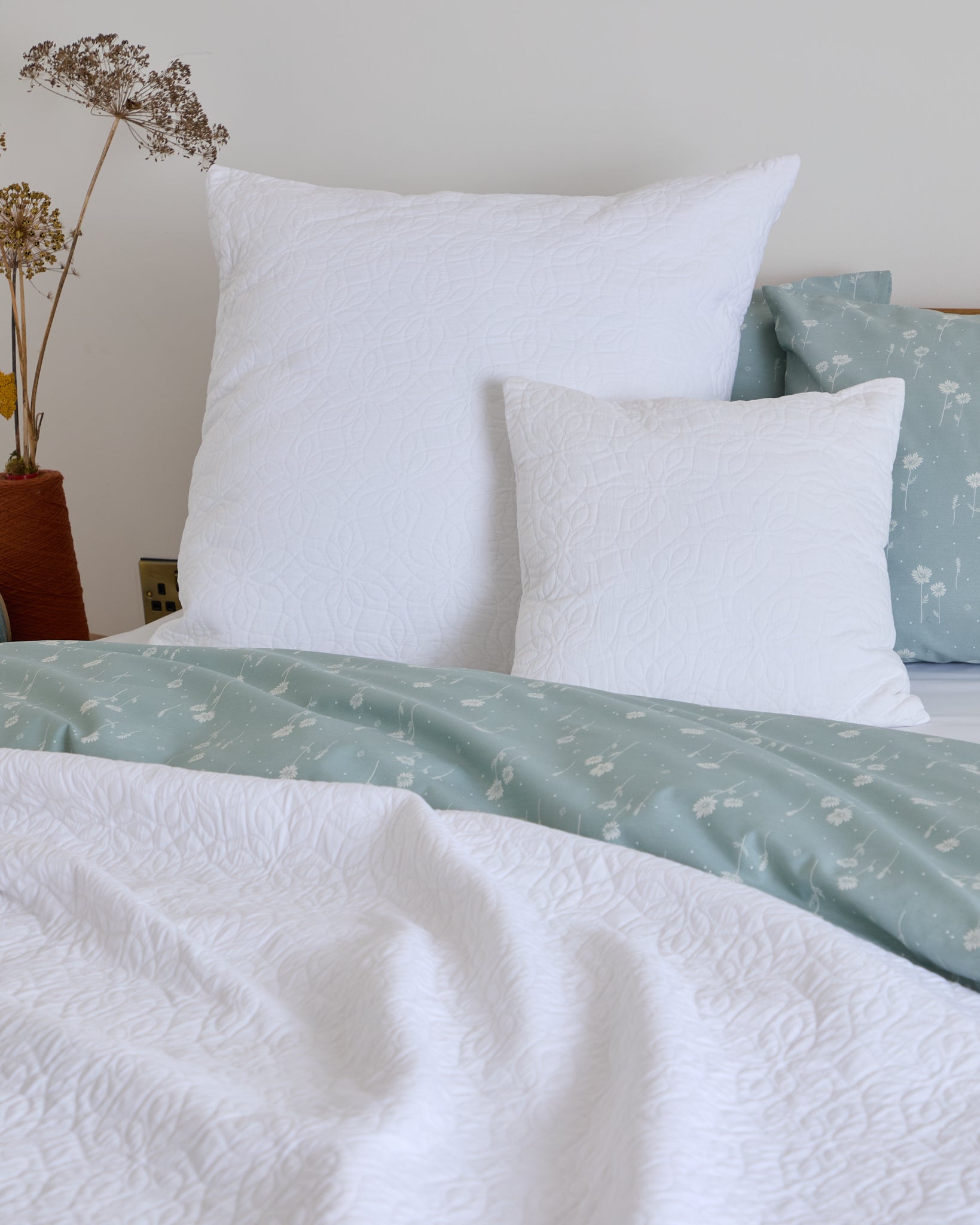 The Daisy White Matelassé Bedspread is a beautifully crafted piece that brings timeless elegance and subtle texture to your home. Designed in Ireland, this bedspread features a refined matelassé weave that adds depth, softness, and a luxurious hand-feel. Made from 100% cotton, it offers breathable comfort and a gently cushioned finish perfect for year round layering.