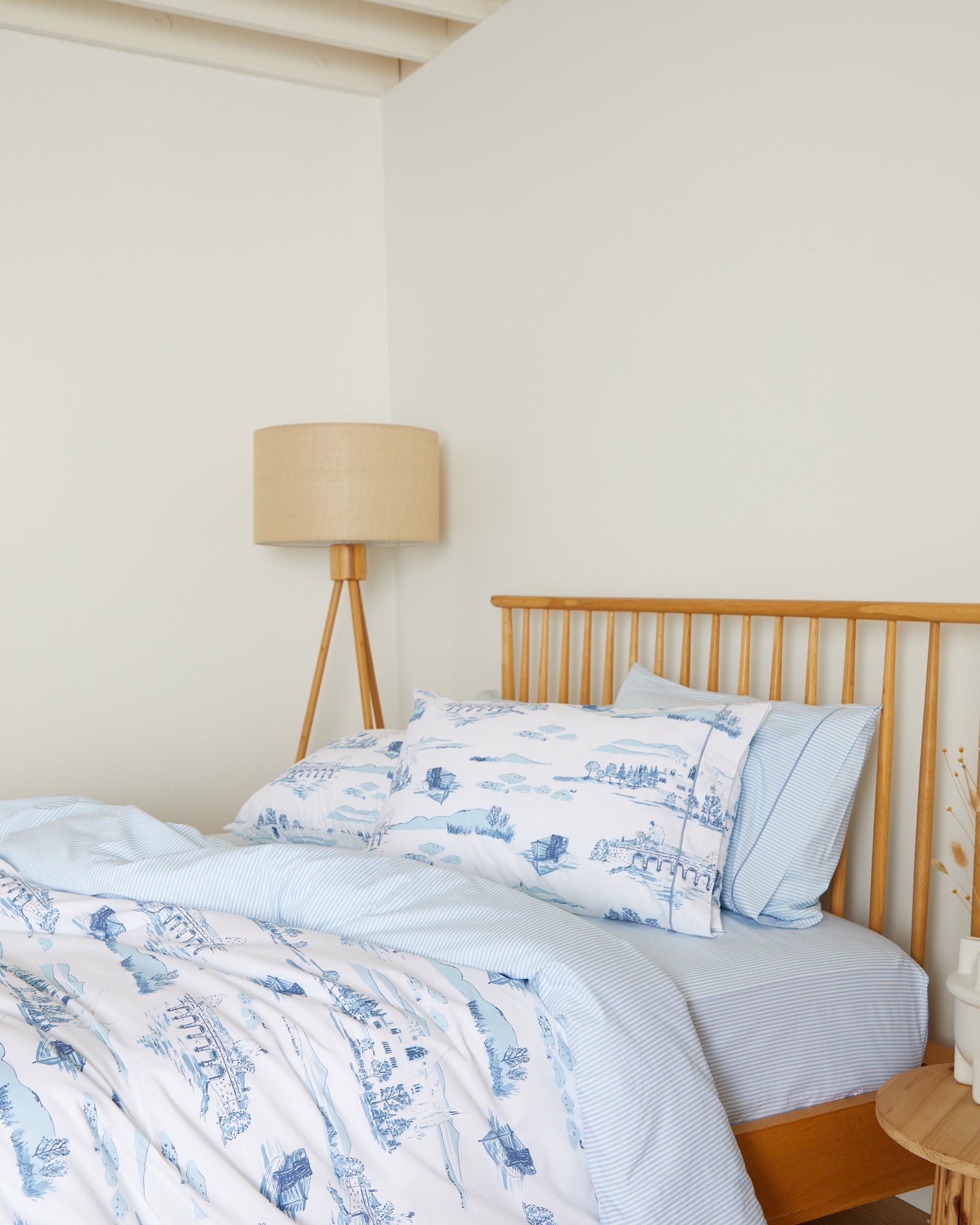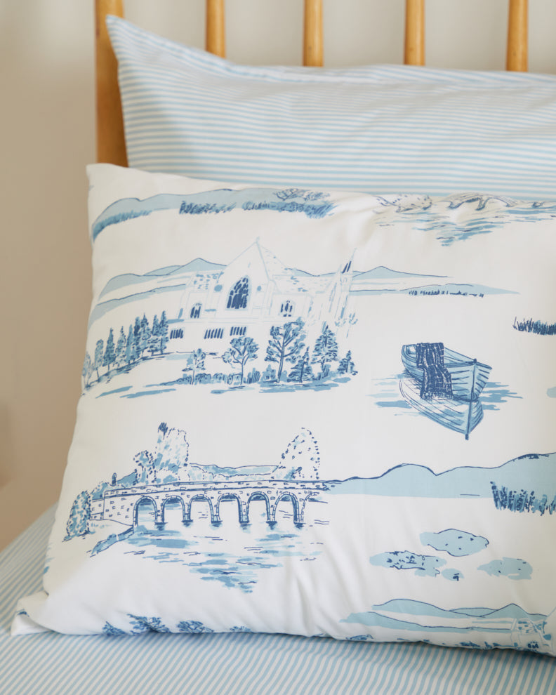 Featuring hand-drawn illustrations of our mill and the local area, each one is expertly crafted in Portugal using lightweight 300-thread-count cotton.