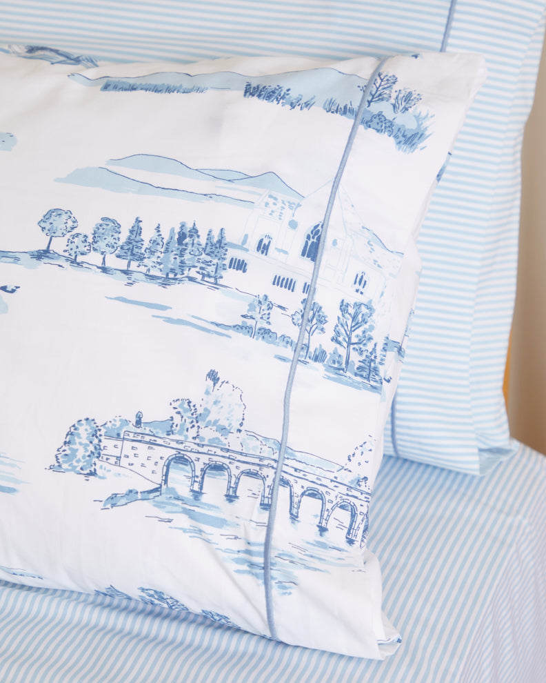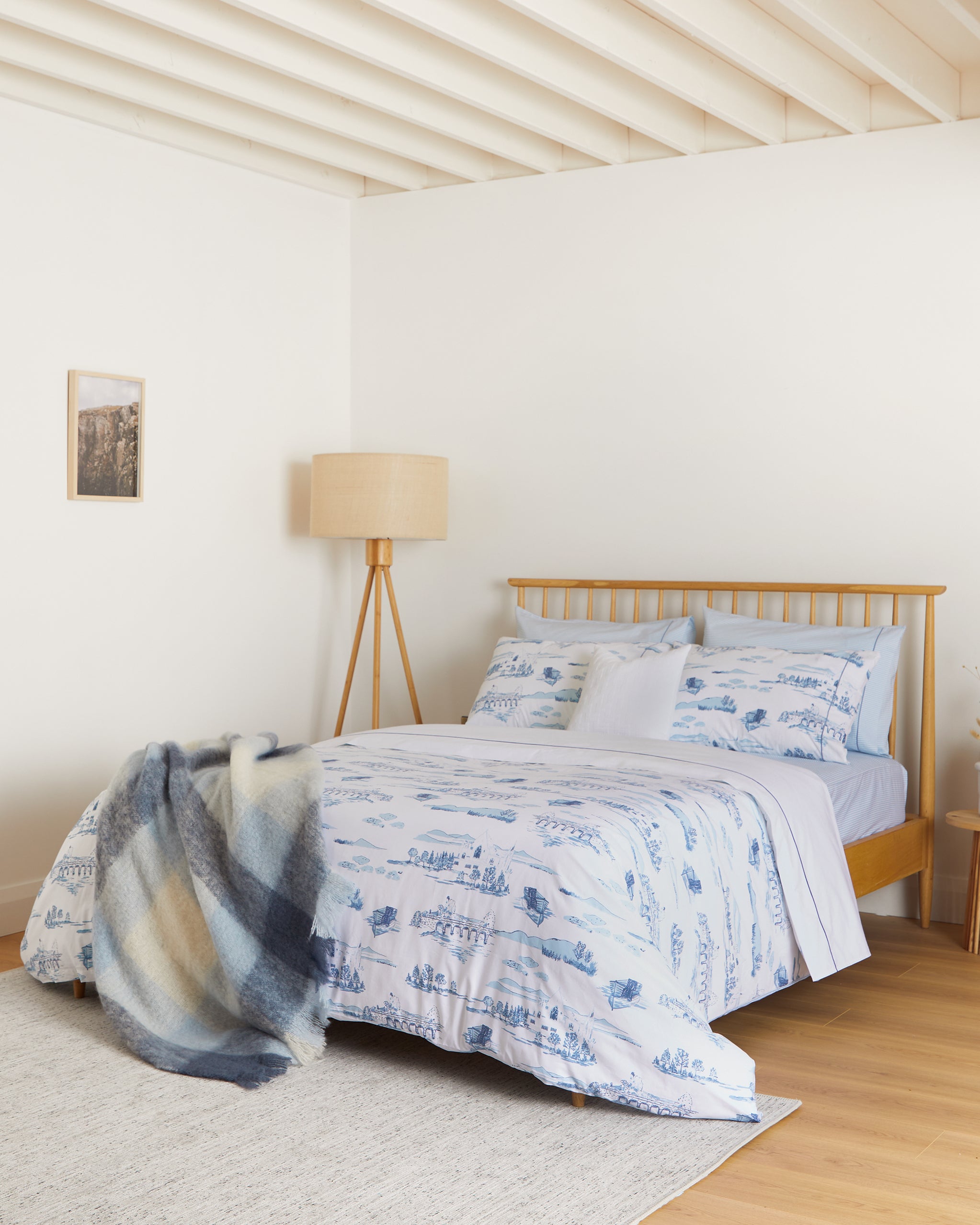 Featuring hand-drawn illustrations of our mill and the local area, each one is expertly crafted in Portugal using lightweight 300-thread-count cotton.