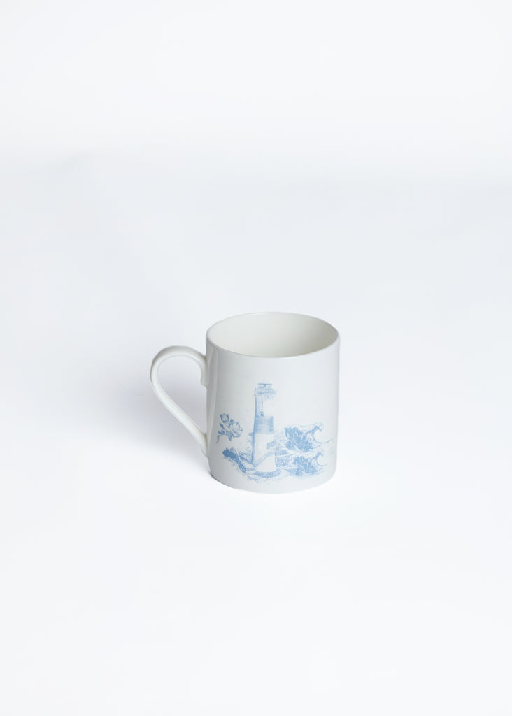 The Foxford Lighthouse Mug print was designed in collaboration with designer Ruth Gallagher. It features hand-drawn illustrations of iconic symbols from the Wild Atlantic Way.  The timeless printed design is presented in ocean blues, capturing the essence of this stunning coastal region. Experience the extraordinary beauty of Ireland's iconic landscape.