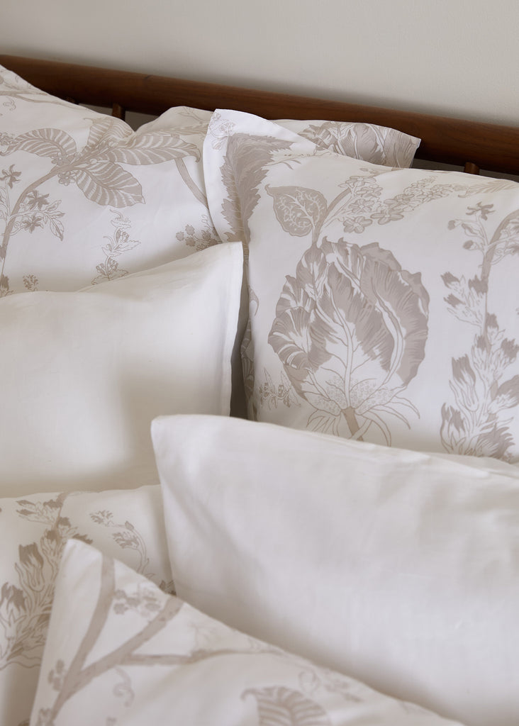 Designed in Ireland by renowned designer expert Helen McAlinden and crafted in Portugal, this 300-thread-count oxford pillowcase features a sophisticated sateen weave and a one-of-a-kind Jacobean design.