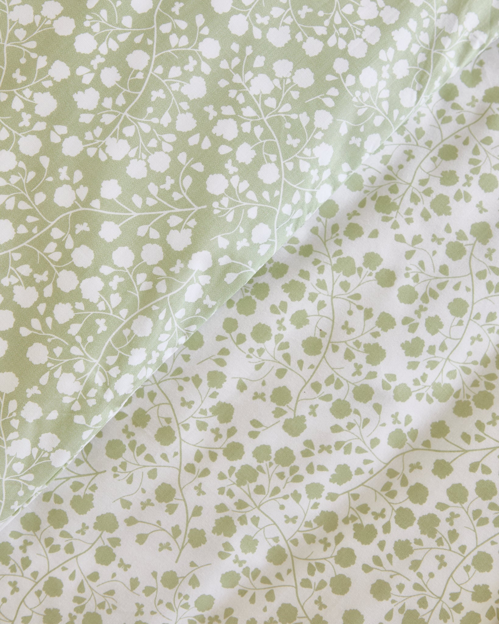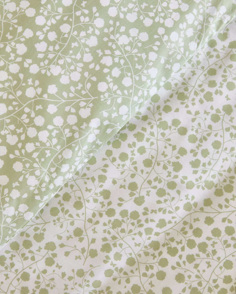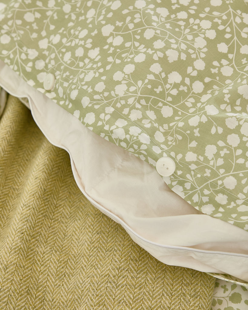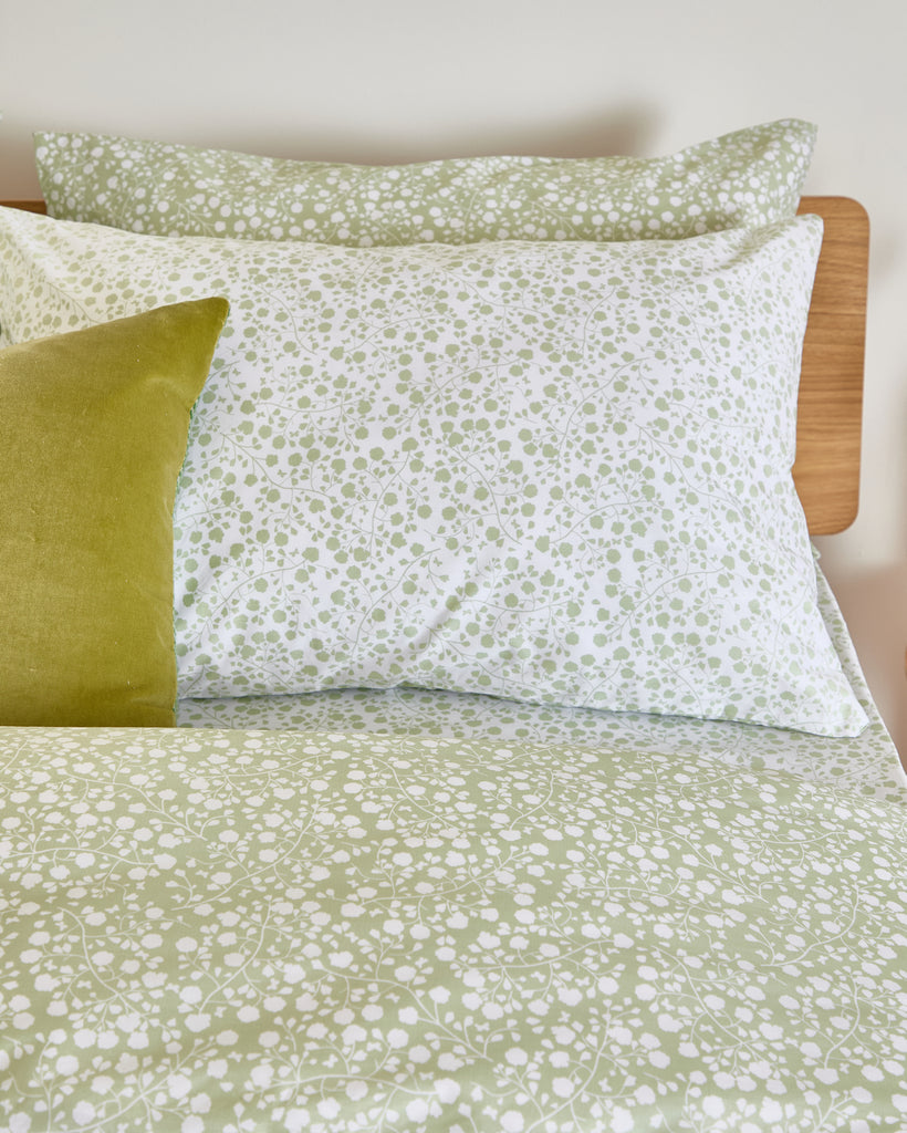 The Foxford Lucy Duvet Set in a beautiful sage green floral design brings a refreshing touch of nature to your bedroom. New for SS25 and part of our Everyday Collection, this duvet set is crafted with a 180-thread count, offering a soft and breathable feel for everyday comfort. The delicate floral pattern creates a tranquil vibe, perfect for welcoming the new season with style. Designed in Ireland, the Foxford Lucy Duvet Set blends modern design with the timeless quality of Irish craftsmanship. Add a touch of nature and Irish design to your home and create a serene retreat with this elegant and versatile duvet set.