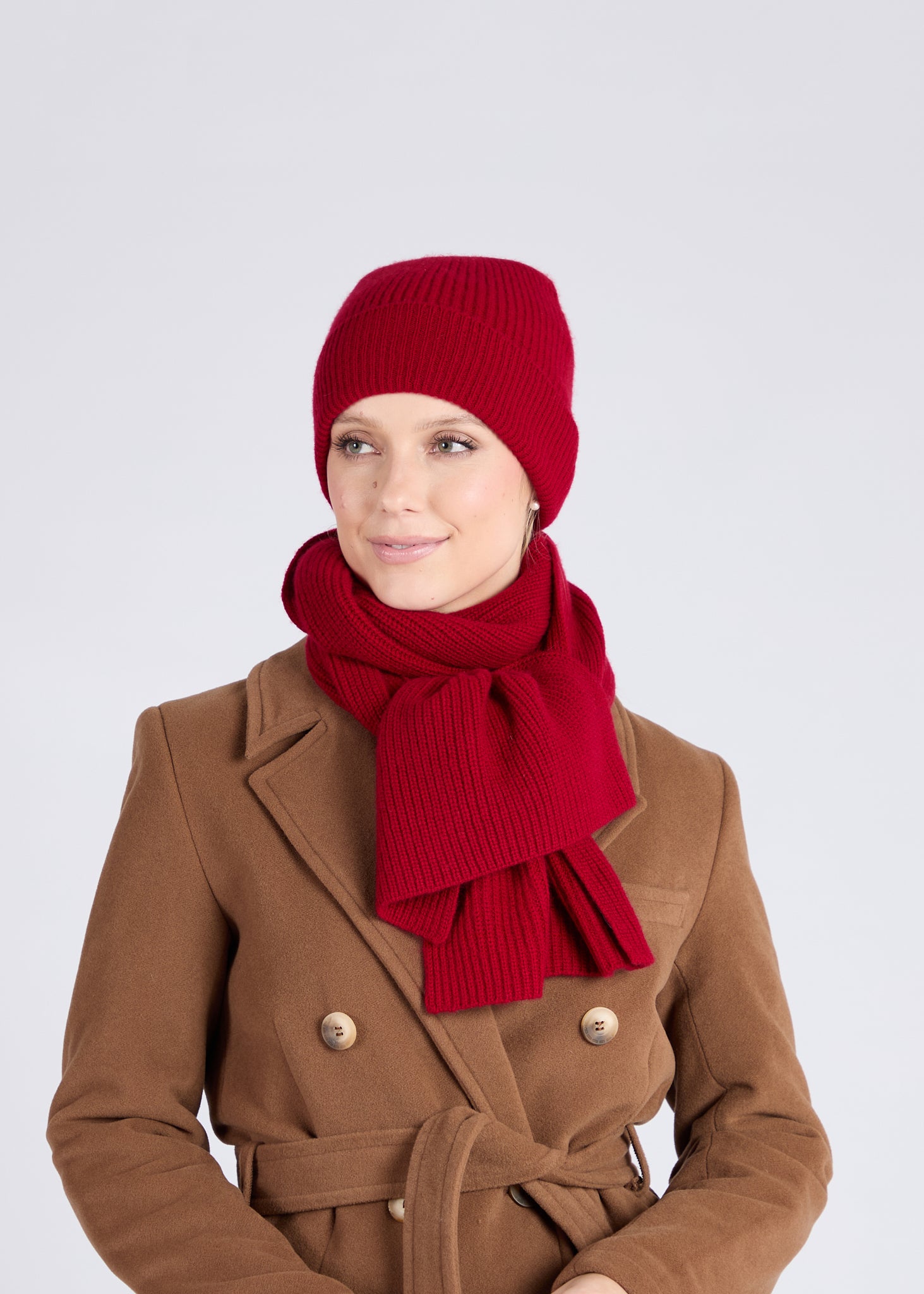 Foxford Red Ribbed Cashmere Beanie