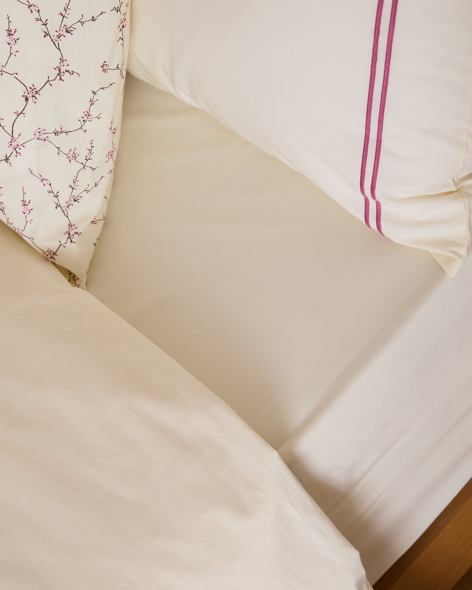 Enjoy everyday comfort with the Foxford Evelyn Buttermilk Fitted Sheet. Crafted from 180-thread count cotton, this sheet is soft, breathable, and made to last. Its solid cream finish gives a timeless, versatile look that works beautifully in any bedroom.