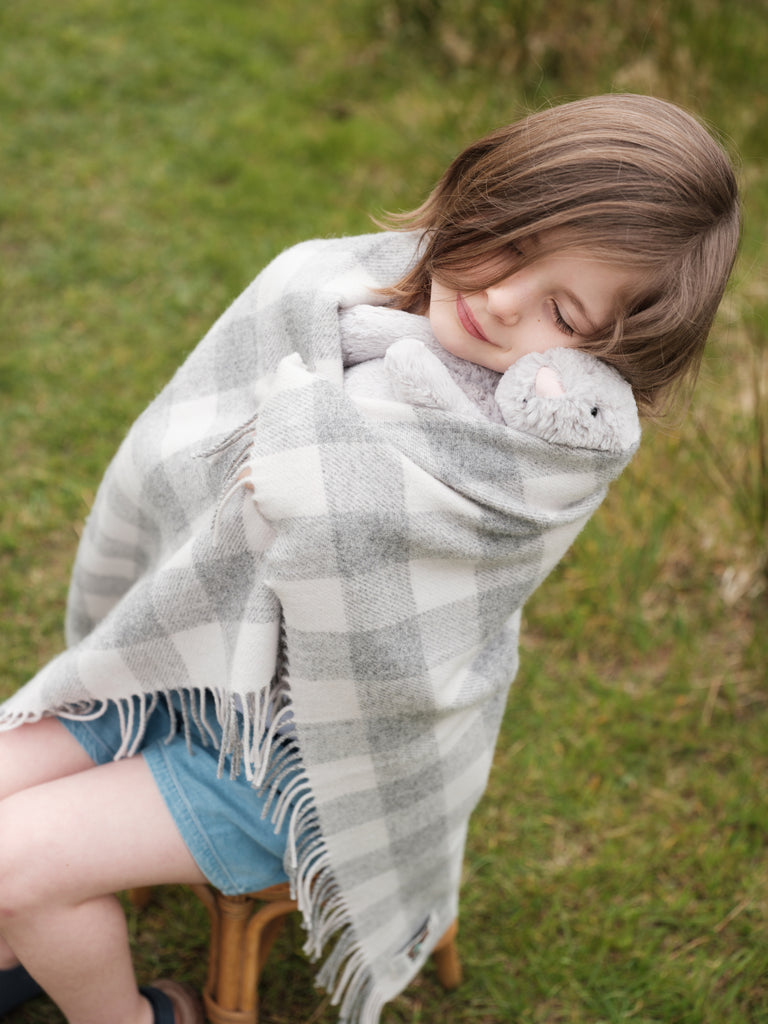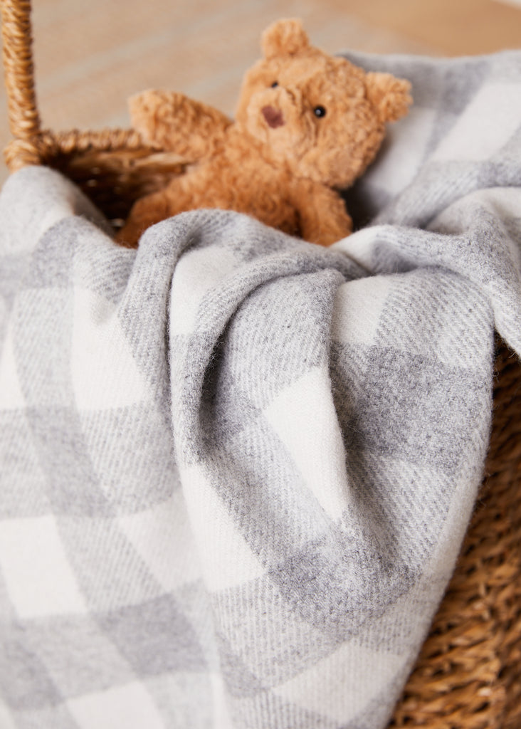 Foxford Pearl Grey Check Lambswool Baby Blanket