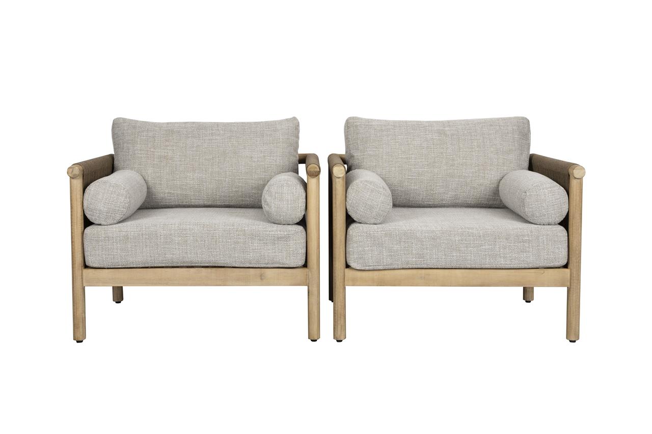 Even if high temperatures are absent, the Oasis furniture creates a warm oasis in your outdoor space. Generous cushions rest on the acacia wood frame. These provide ultimate comfort and beautifully complement the grey-wash finish of the wood. But the showstopper of this set is, of course, the rope that playfully stretches between the back and armrests.