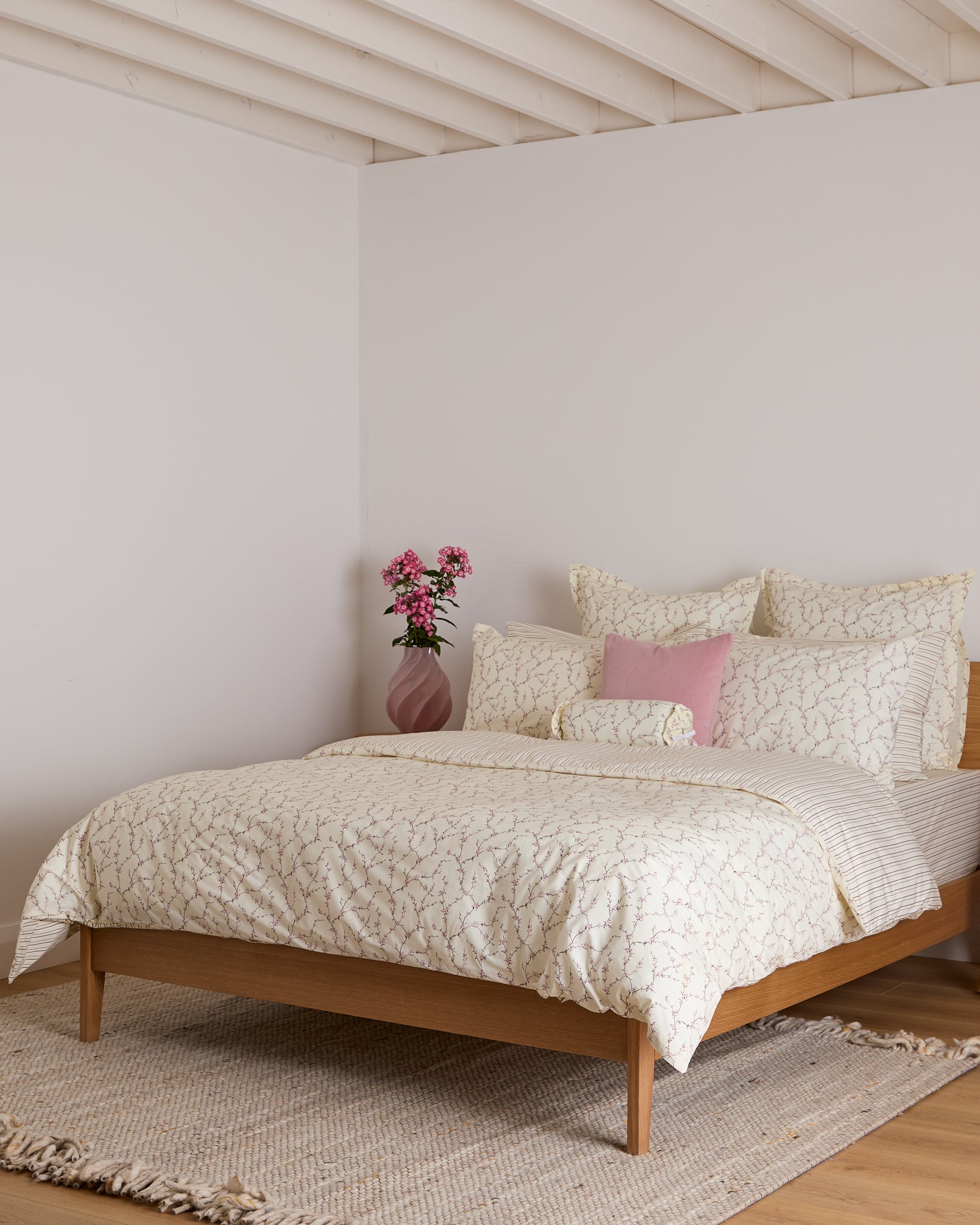 Add a touch of seasonal elegance with the Foxford Tess Single Oxford Pillowcase AW25. Made from 100% premium 300-thread count cotton and woven in Portugal, this pillowcase features the delicate cherry blossom print on a soft cream base, perfectly complementing the Tess Duvet Set.