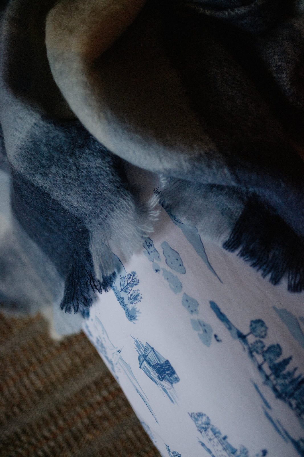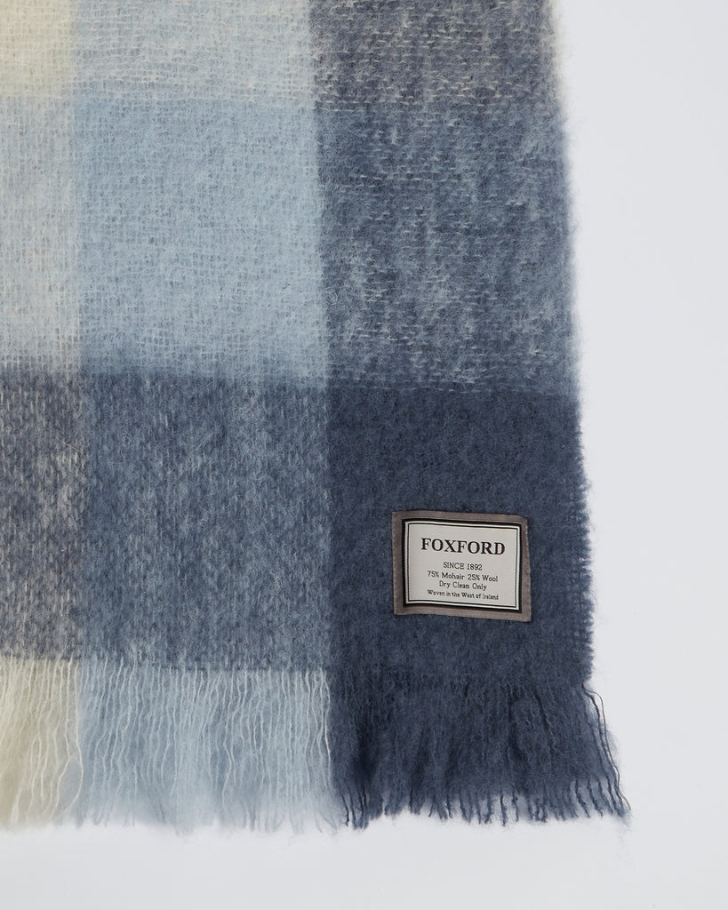 Designed in a classic block-check print and expertly crafted in our County Mayo mill, the Annagh Throw mohair throw is a fluffier alternative to pure lambswool. Woven in shades of blue, yellow and green, and finished with a traditional raw edge fringe – it’s the perfect way to add a touch of texture to any bedroom setup.
