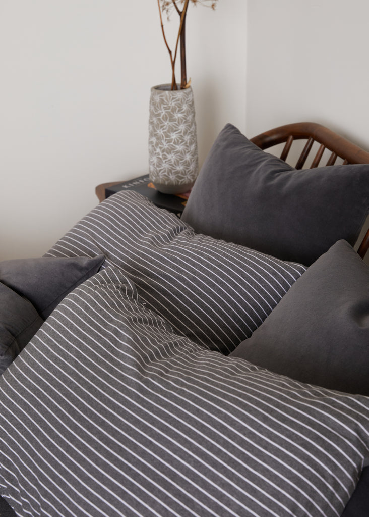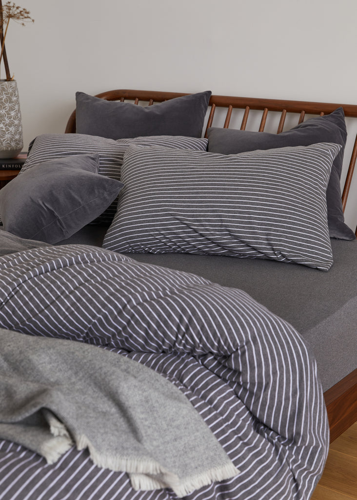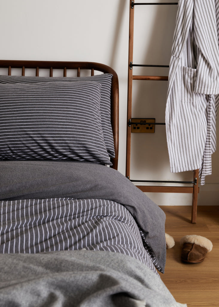 The Foxford Knitted Jersey Stripe Pillowcase Set includes two comfy pillowcases with a classic stripe pattern, making it an ideal pick for boosting the look and feel of your bedding. This set is crafted to be resilient and sophisticated.