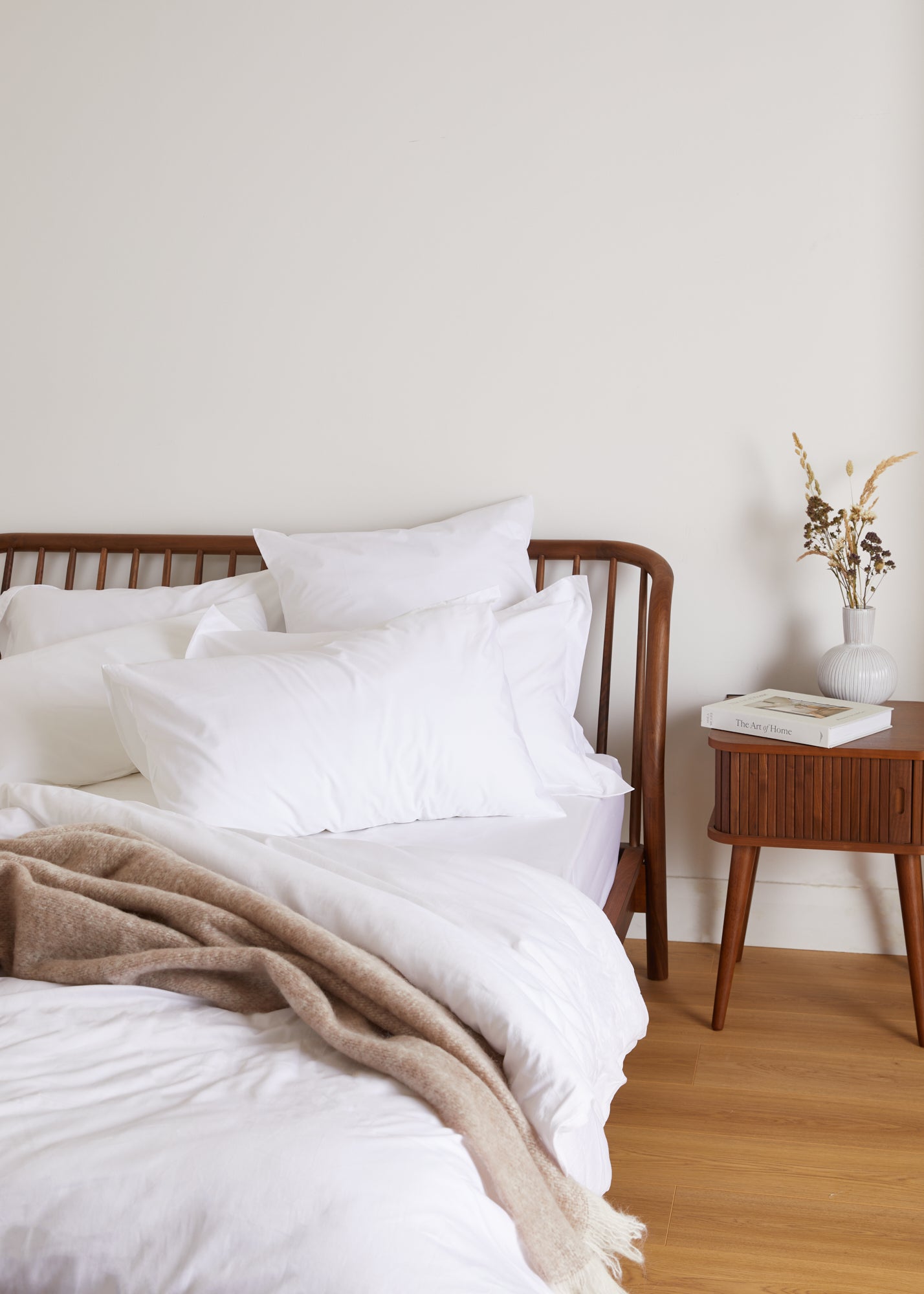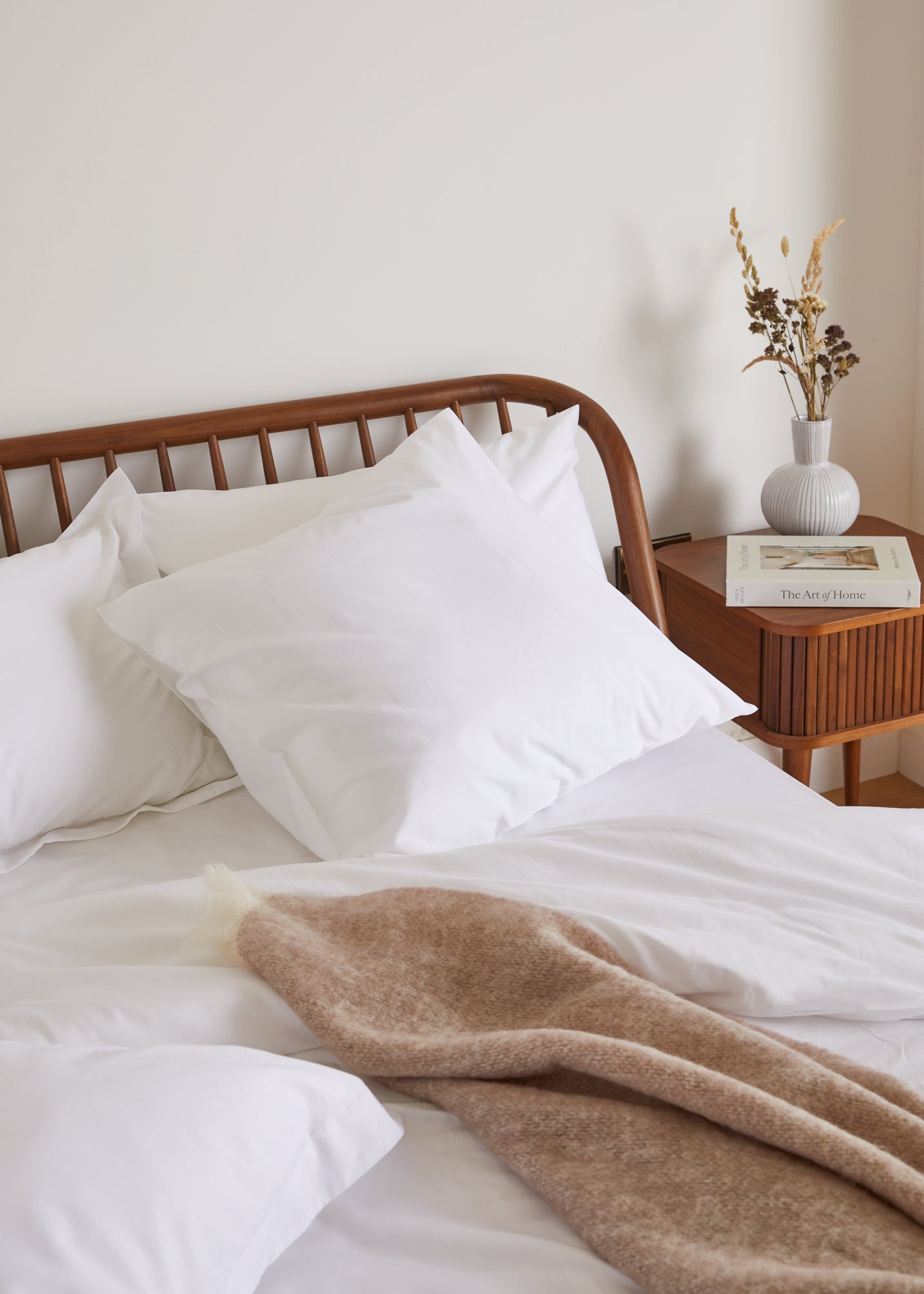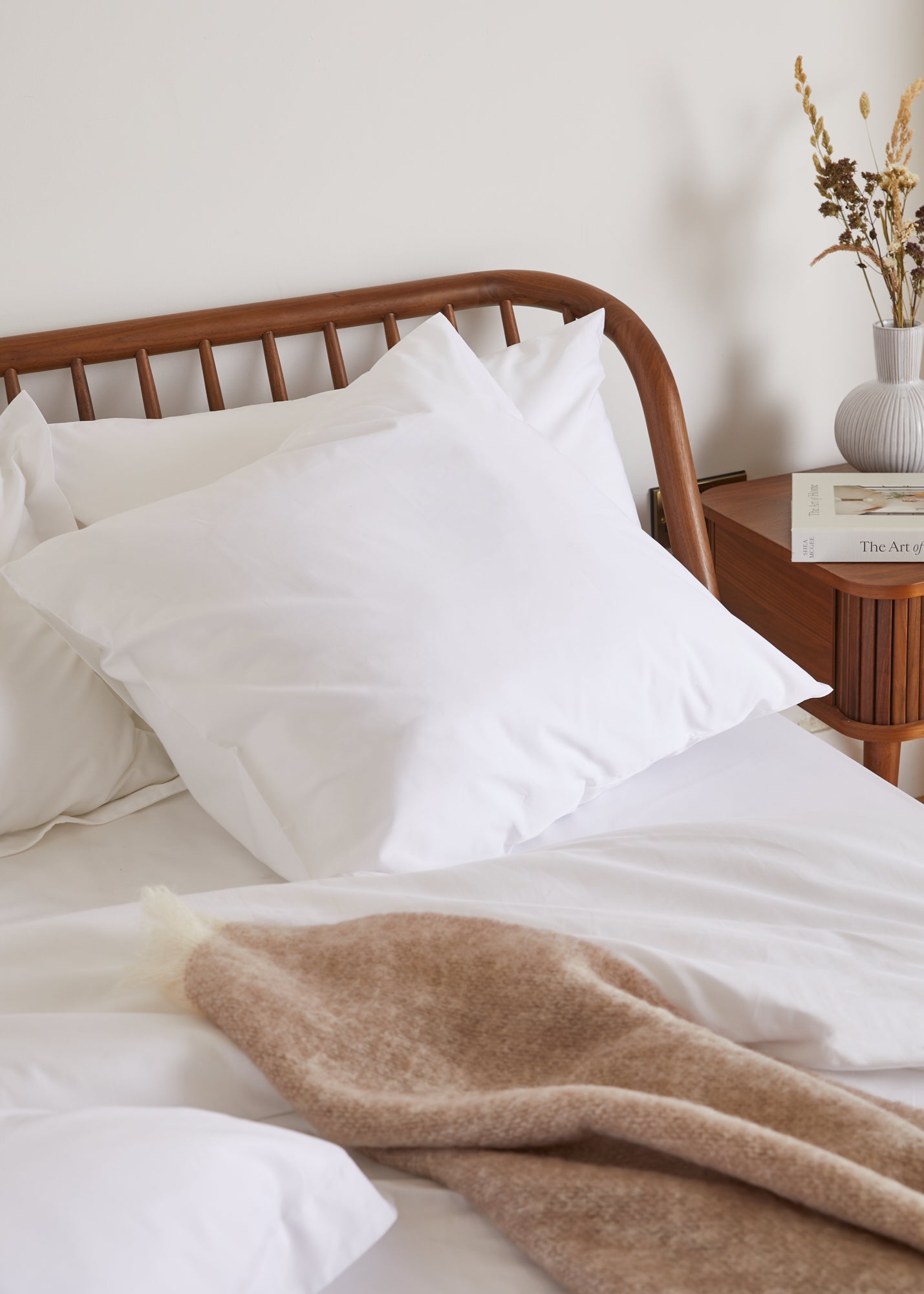 The Foxford White Square Pillowcase boasts a 300-thread count percale weave, providing unmatched softness and durability. This allows for a comfortable and luxurious sleeping experience and ensures that your pillowcase will last for years.