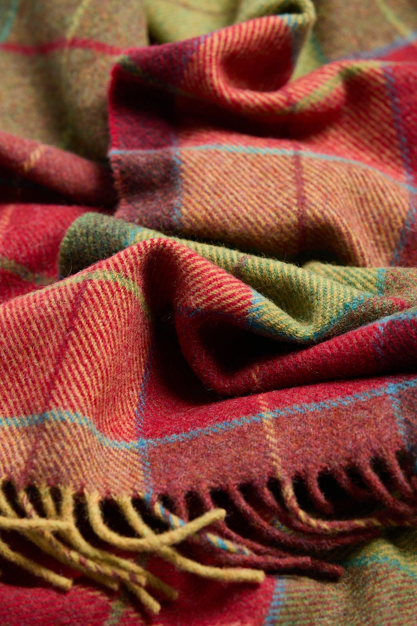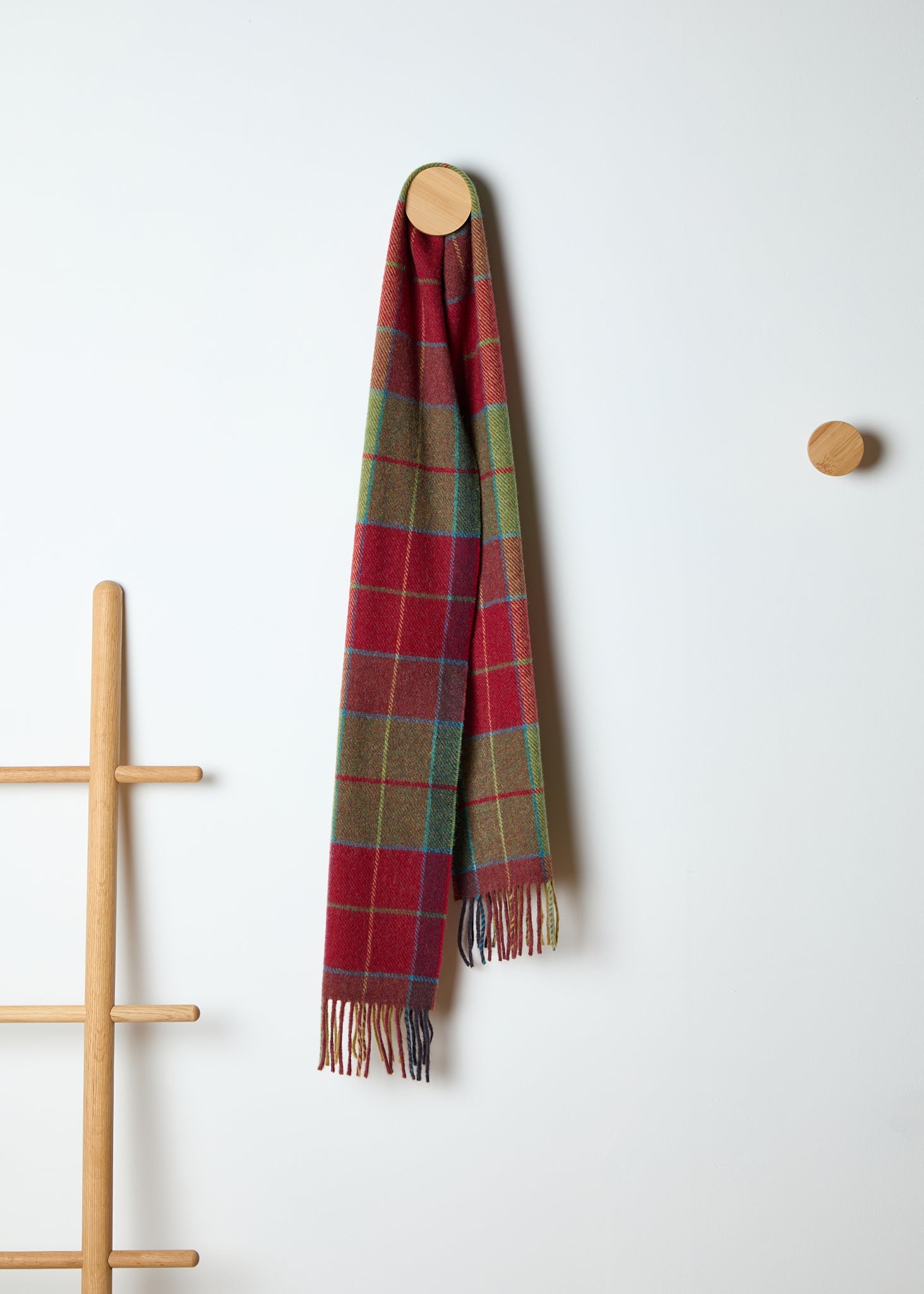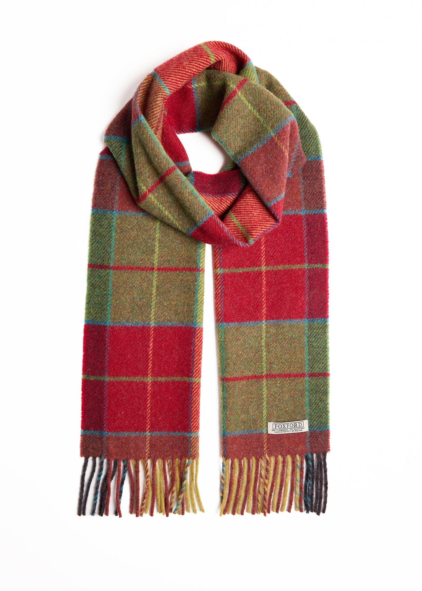 A well-known FOXFORD design, the Wicklow scarf is made from 100% lambswool and finished with a traditional roll fringe. It features a rustic check inspired by our Irish heritage, with shades of mossy green and autumnal red chosen to mirror the rural landscape surrounding our mill.