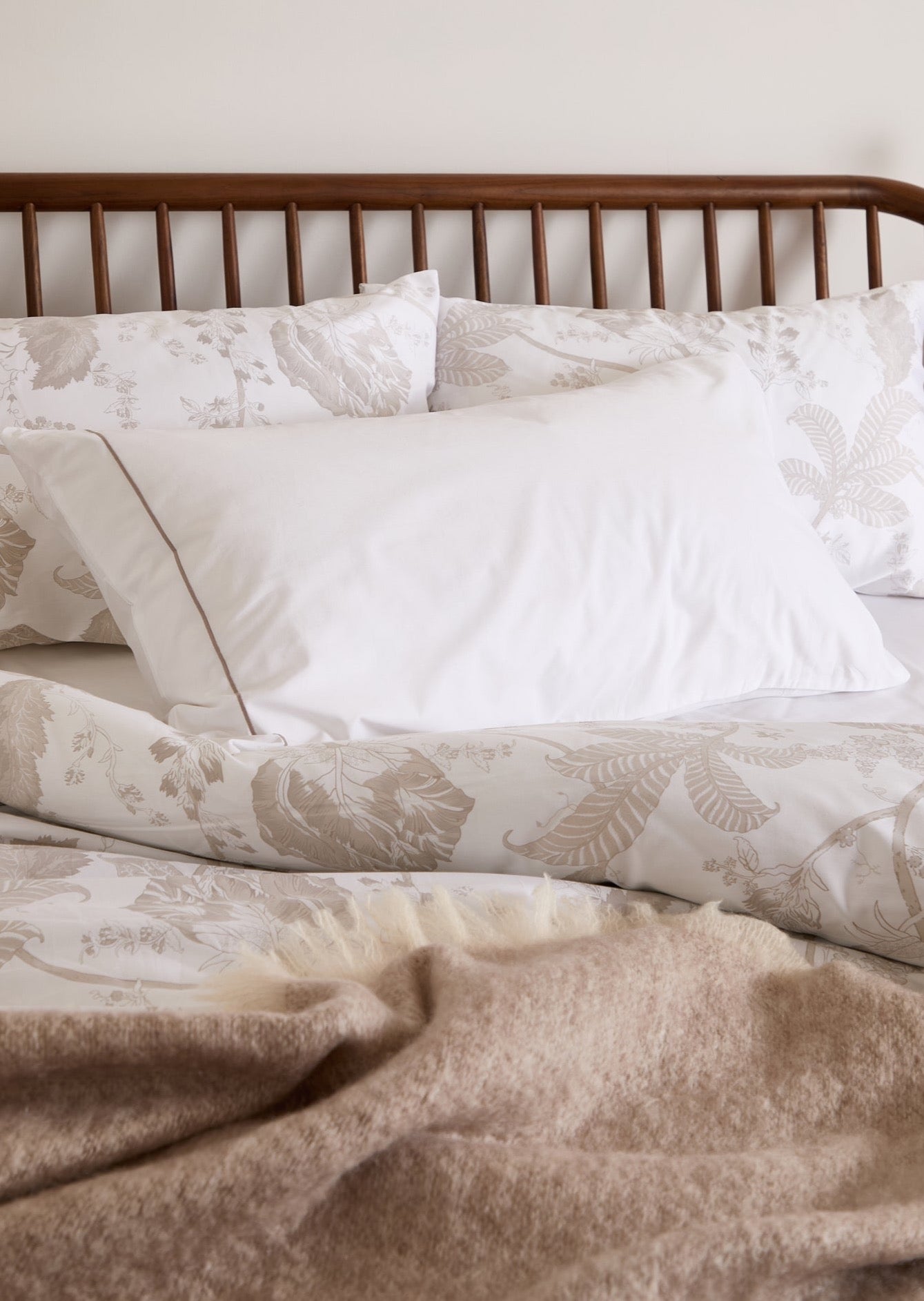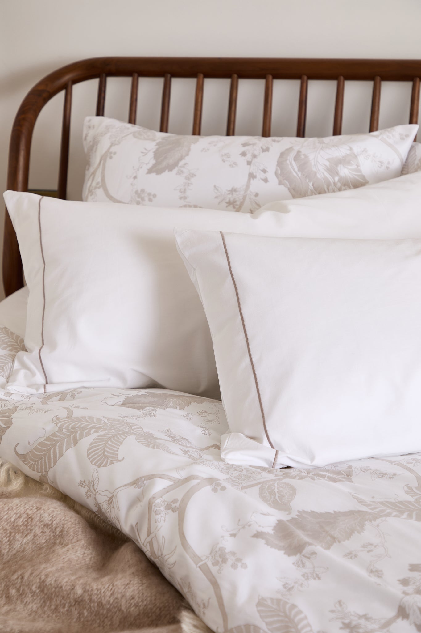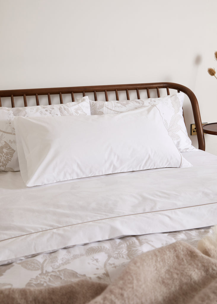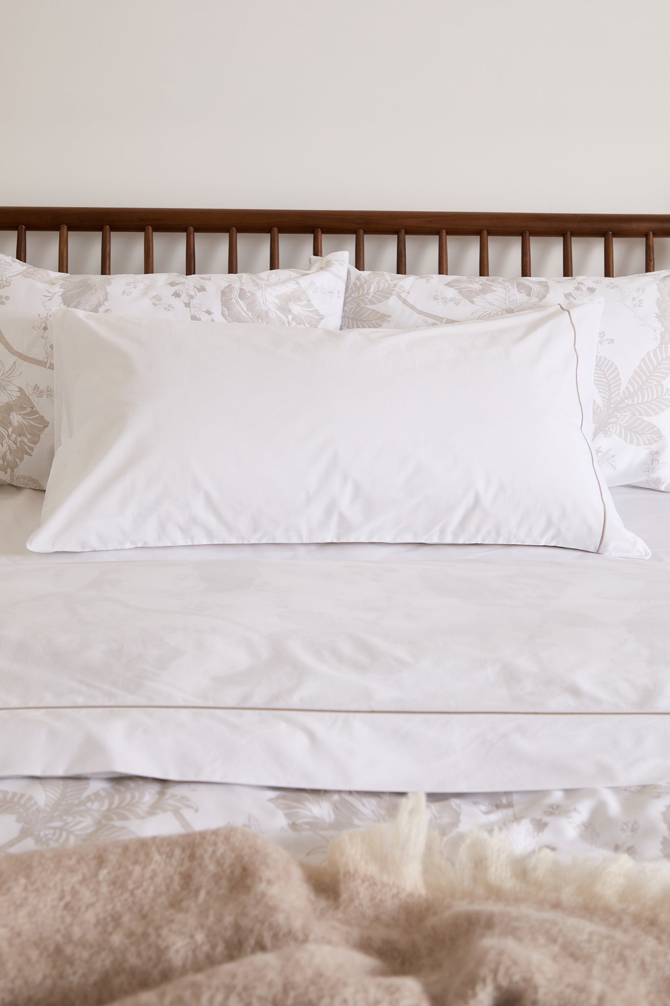 Experience the ultimate in comfort with our White King Pillowcase with Nacre Rolenio. Made from premium 300-thread cotton percale, this pillowcase boasts a smooth texture for a restful night's sleep. A perfect addition to any bedding arrangement.