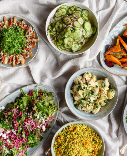 Fresh produce is delivered every morning from the local area, as are high quality seasonal ingredients sourced from up and down the West of Ireland, and herbs grown close-by in our FOXFORD gardens. Artisan bread, cakes and pastries, are all made on the premises, as well as a selection of hot and cold dishes — served with a selection of dressing and chutneys made in the FOXFORD kitchen.