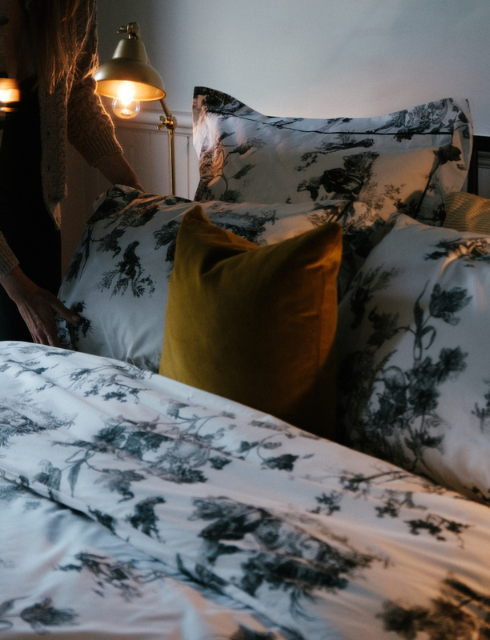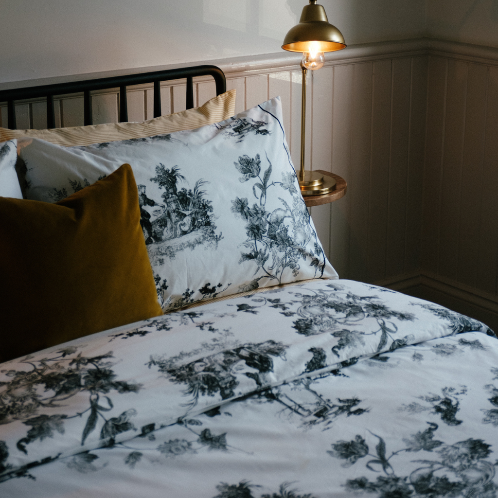 The Foxford Toile offers a luxurious feel and design. This bedding set features a stylish toile pattern in a warm black or green, creating a timeless look that will surely add an elegant touch to any space.