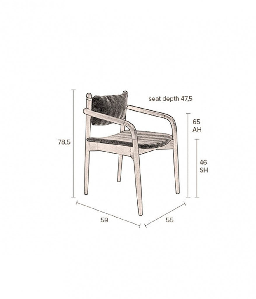Inspired by 1960s designs, the Torrance chair has a slender solid wood frame with a sleek silhouette. The PU-leather details on the backrest add a contemporary touch. The broad welcoming seat makes Torrance a perfect choice for any dining area.